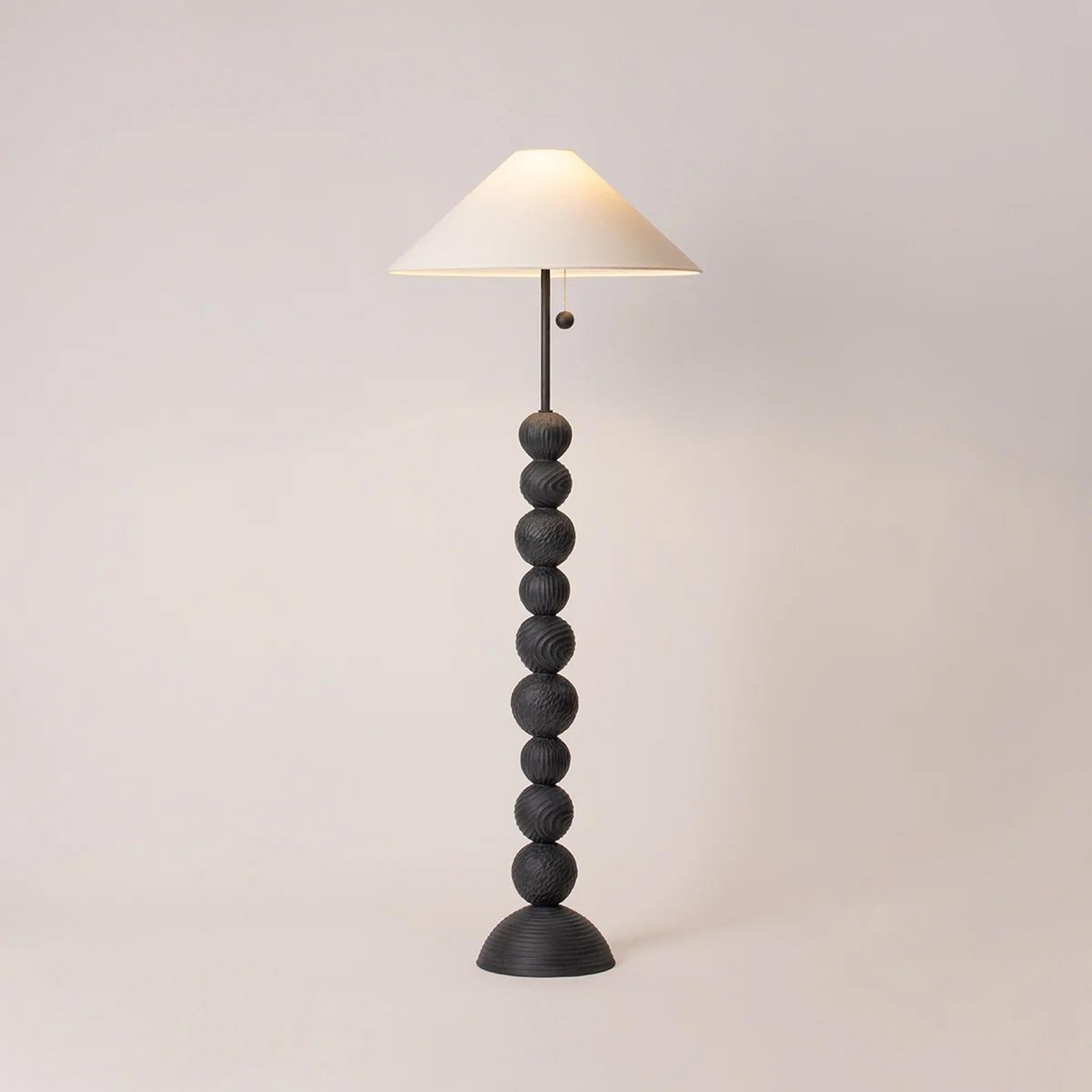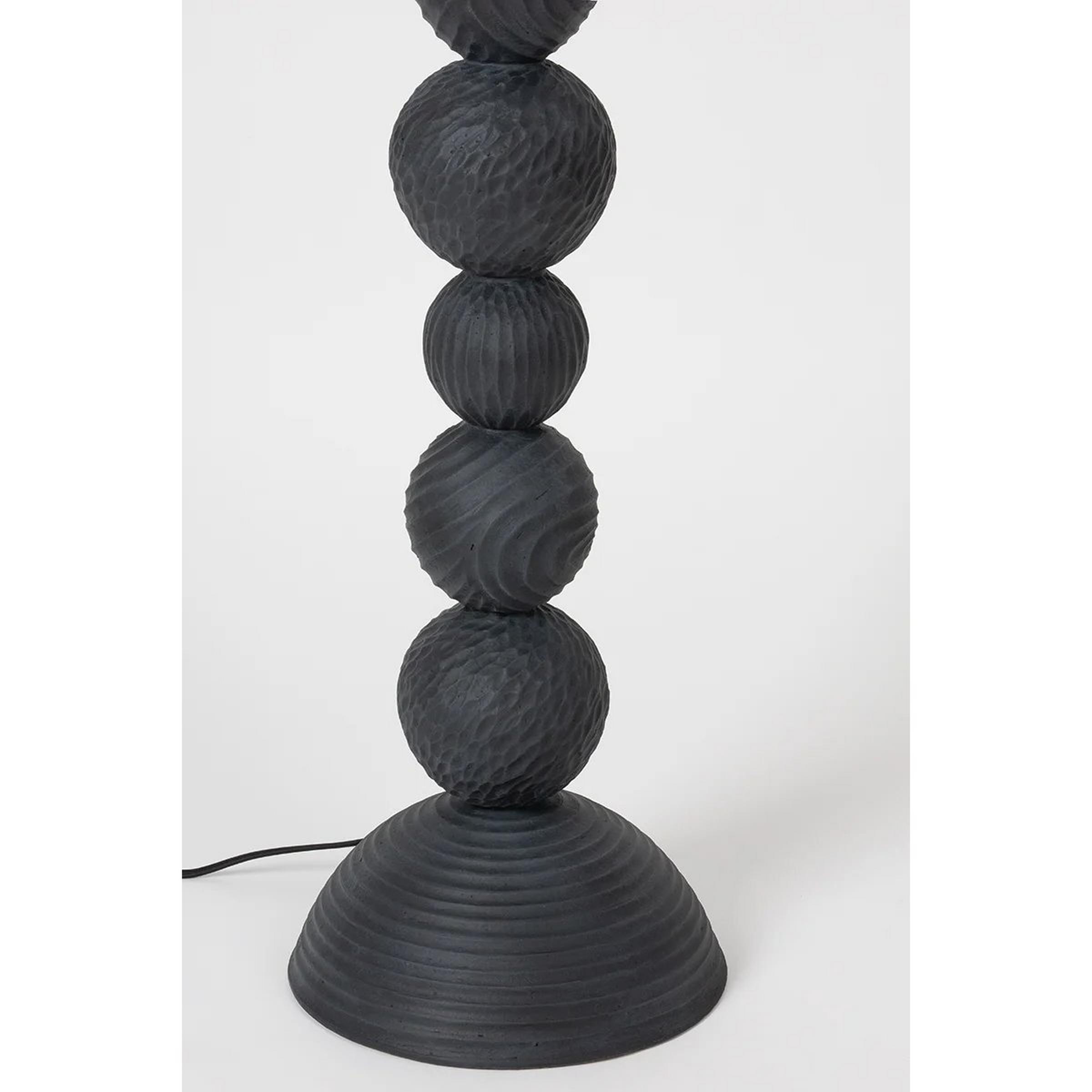This thought-provoking floor lamp uses a unique ceramic base of stacked spheres to beautify a home with a moody atmosphere. The spheres appear etched with textures that evoke the feel of desert sand dunes and chiseled wood, making a decorative piece that pulls together the disparate concepts that inspired it.