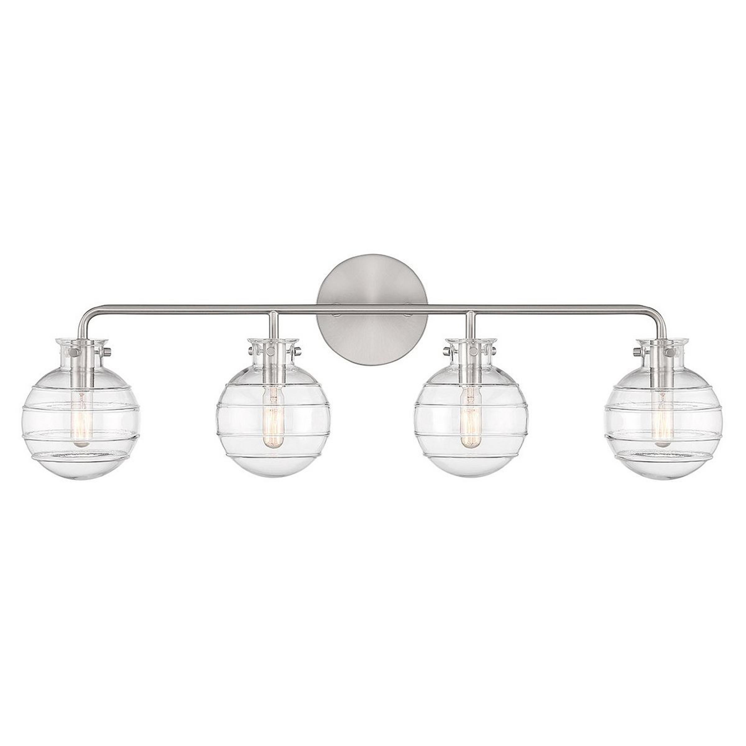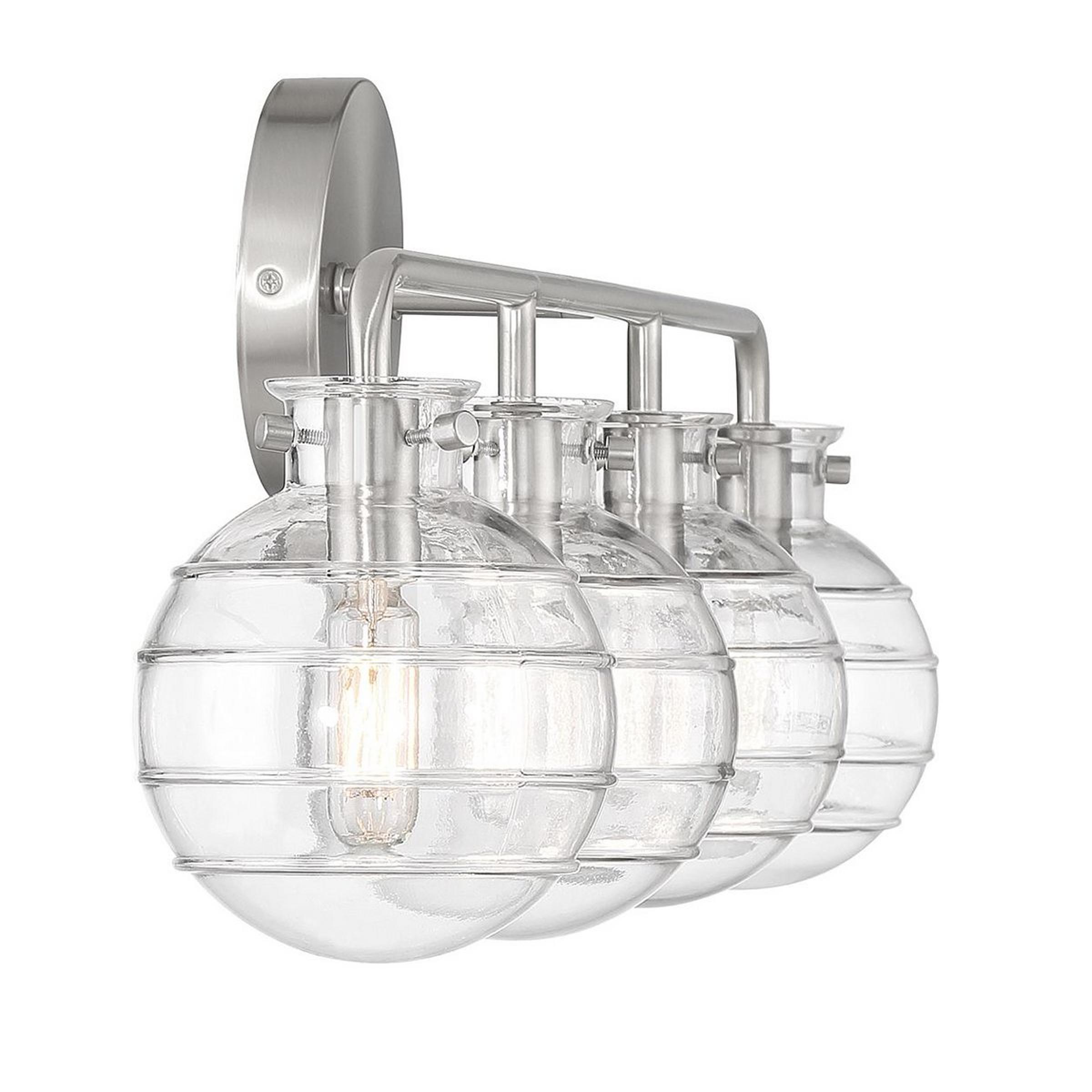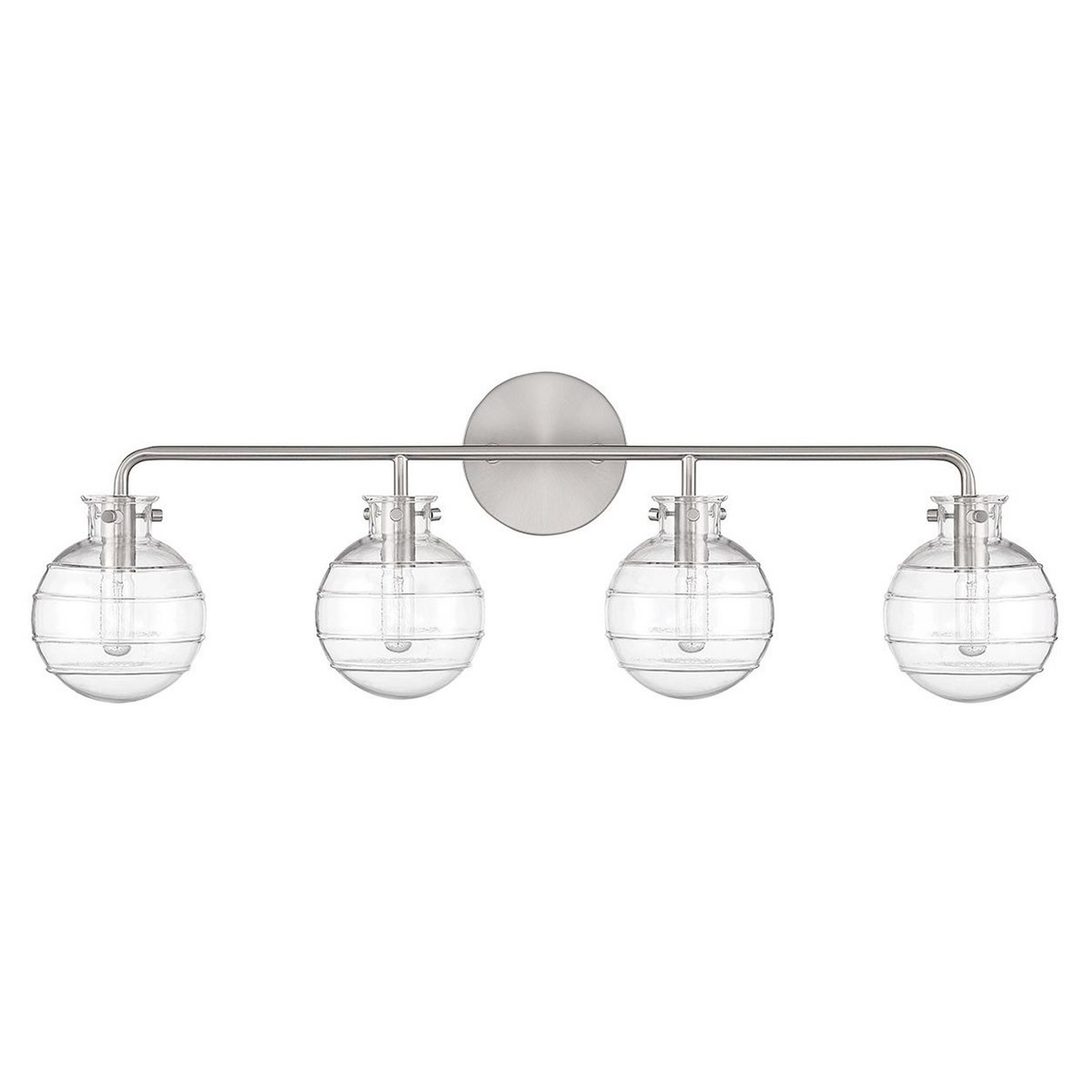 Featuring a clear glass globe with horizontal stripes, this bath light is sure to add a whimsical touch to any room. Each sphere is held onto the fixture with decorative screws inspired by industrial-styled designs.