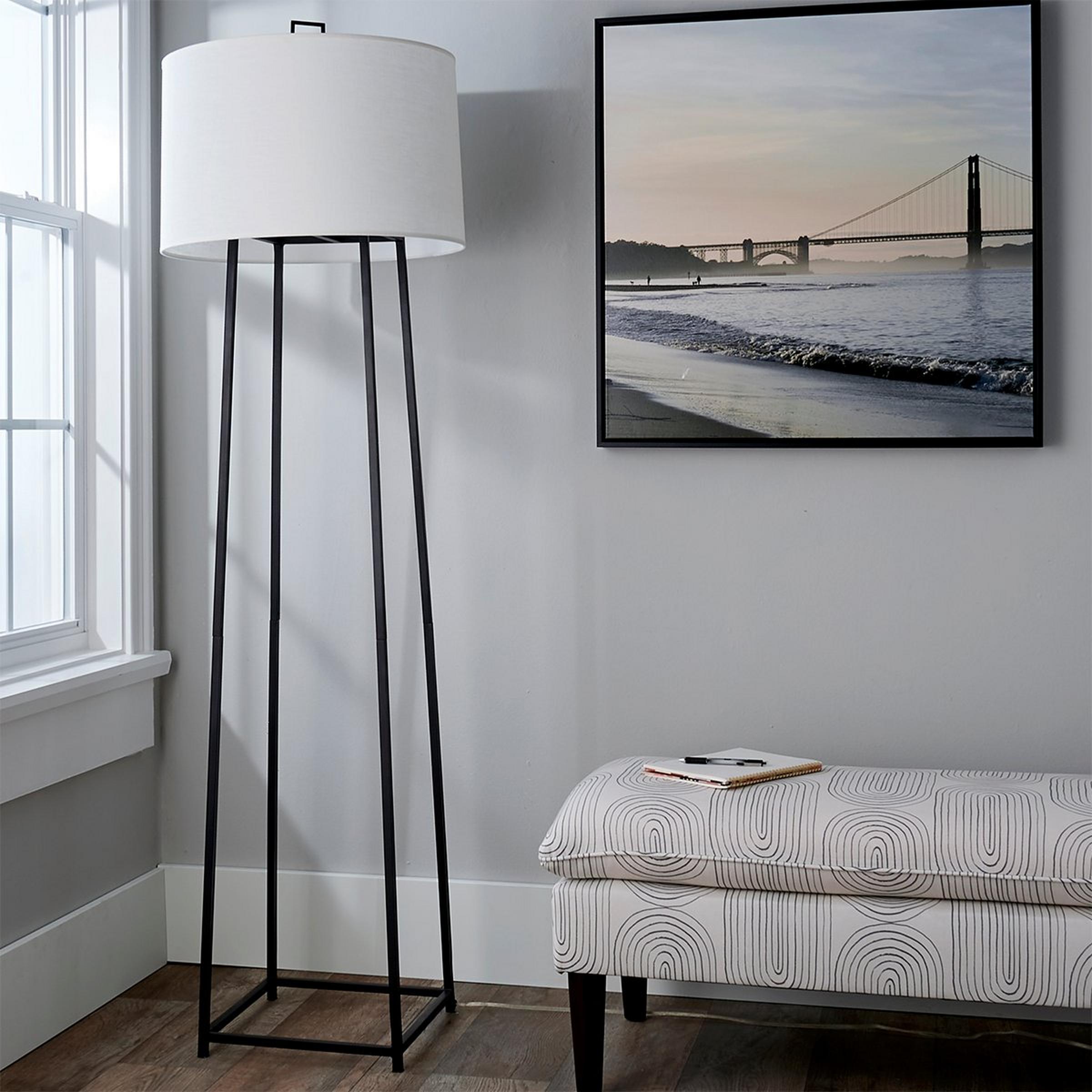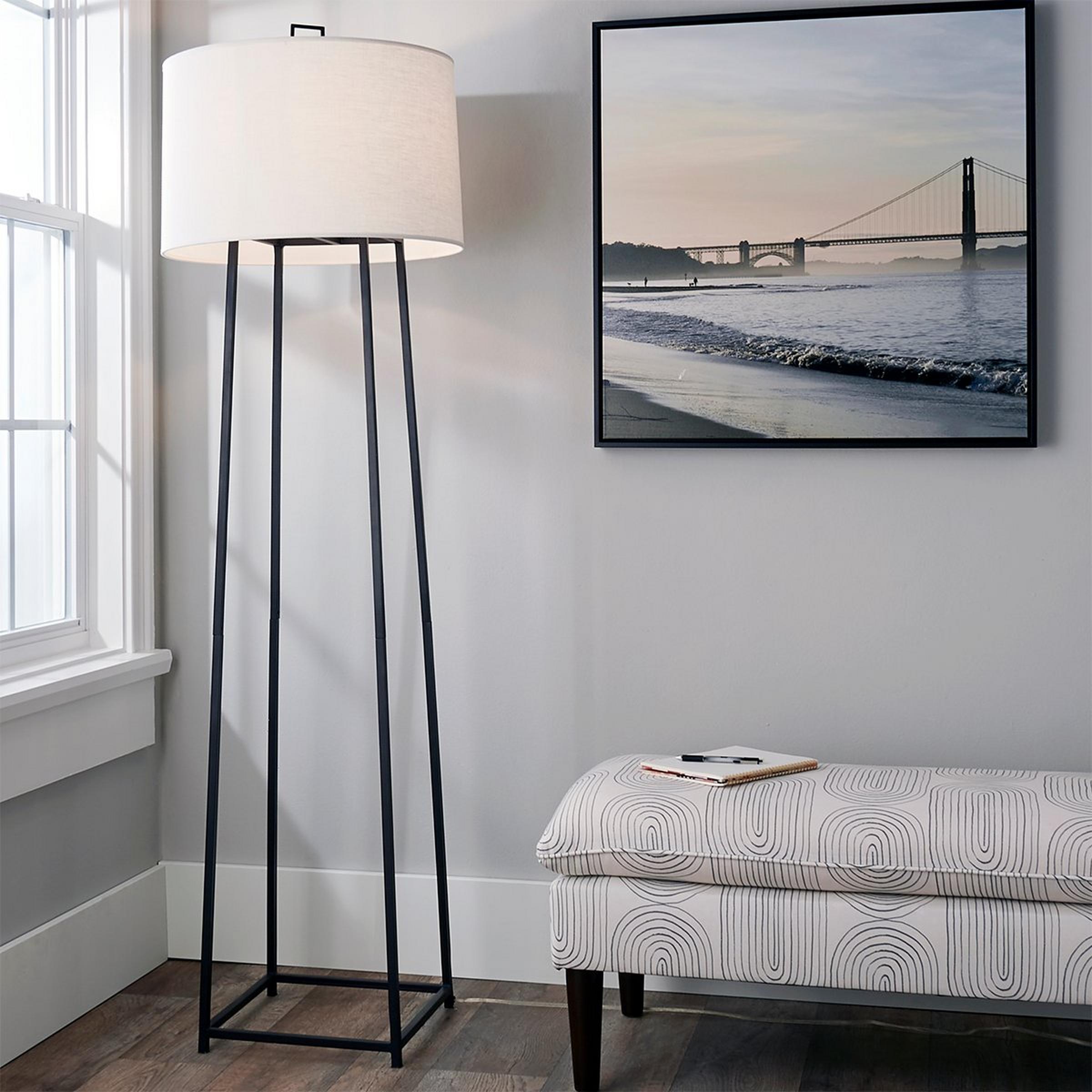Our Structural Mod Floor Lamp has an open concept base where less is more. The minimalist frame is adorned by a pure white shade to warm the glow of the light. For your contemporary living room or an office that is looking to simplify their style, this fixture can provide your desired fashion statement.