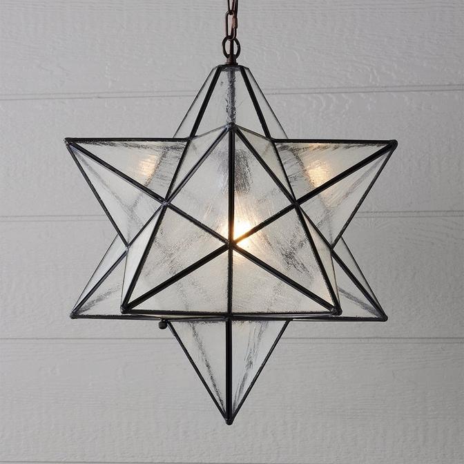 Add a unique and whimsical sparkle to your space with our perennial favorite Superior Moravian Star Hanging Lights This outdoor hanging star pendant light comes with Clear Rippled or White glass.