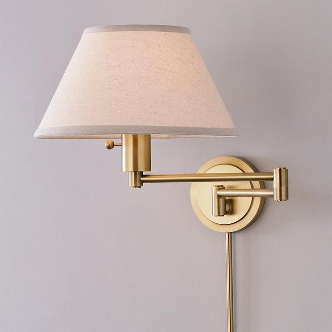 Our Superior Swing Arm pairs its solid construction with a plethora of useful features. It boasts three adjustable light levels, a shade diffuser to prevent glare, and easy conversion to direct wiring. Perfect for a reading nook or above a bedside table, this piece extends to illuminate where you need extra light, and its stylish ball turn knob makes for simple control. This popular fixture is available in several finishes and linen shade combinations, ensuring that your swing arm pairs with any decor.