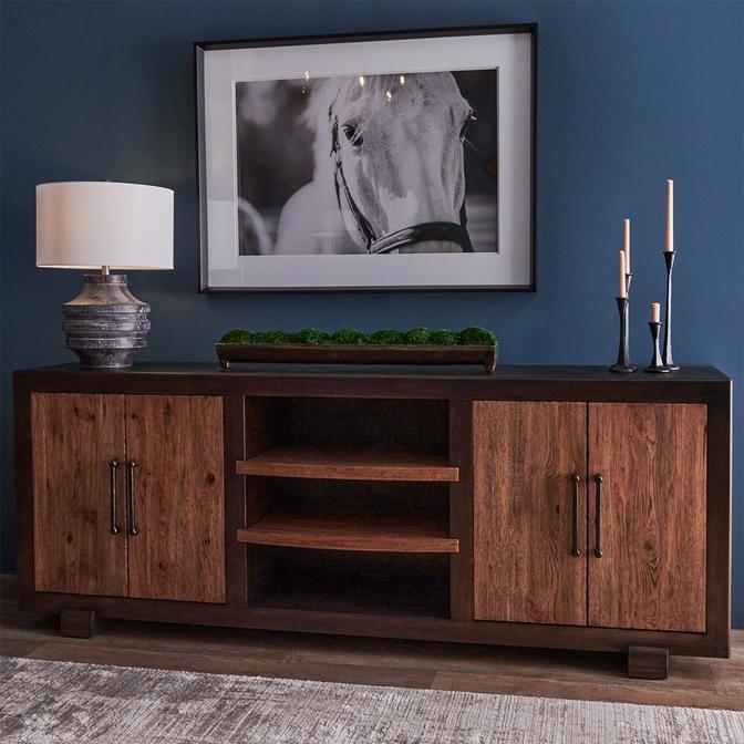 The Tanso Console is as handsome and substantial as a redwood forest. With a dark dusk gesso finish on the body, textural natural wood doors and shelves, and handles of rubbed bronze, this console is all rustic elegance. Add this piece to your dining or living room for a stately farmhouse statement.