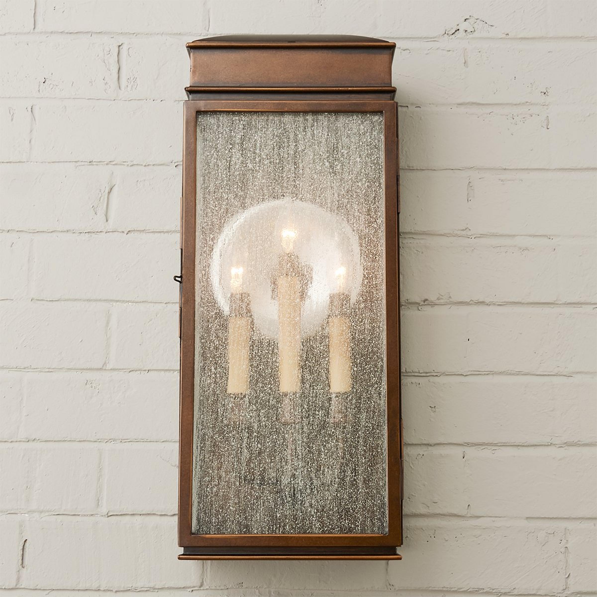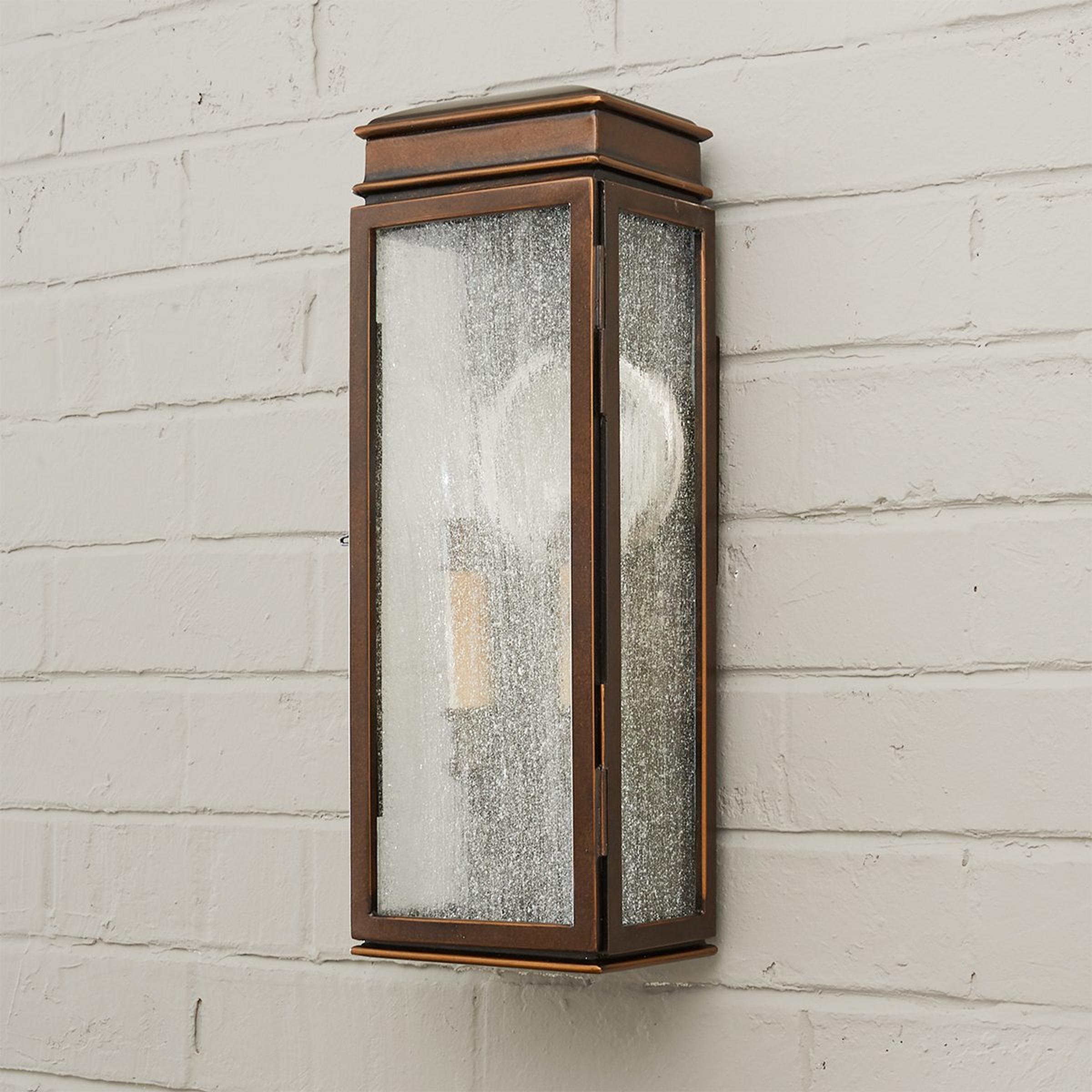 This stunning collection of outdoor lights is a modern interpretation of the classic English pocket lantern and slips into corners and crevices from downtown lofts to California hillside homes. Combined with a polished nickel reflector this light is both historically accurate and functional as it increases light output. Features stainless steel frame and powder coated bronze roof and base and clear seeded glass. A four step finishing process of powder coating, hand finishing and two coats of outdoor polyurethane assure its weather resistance and a lasting beauty.