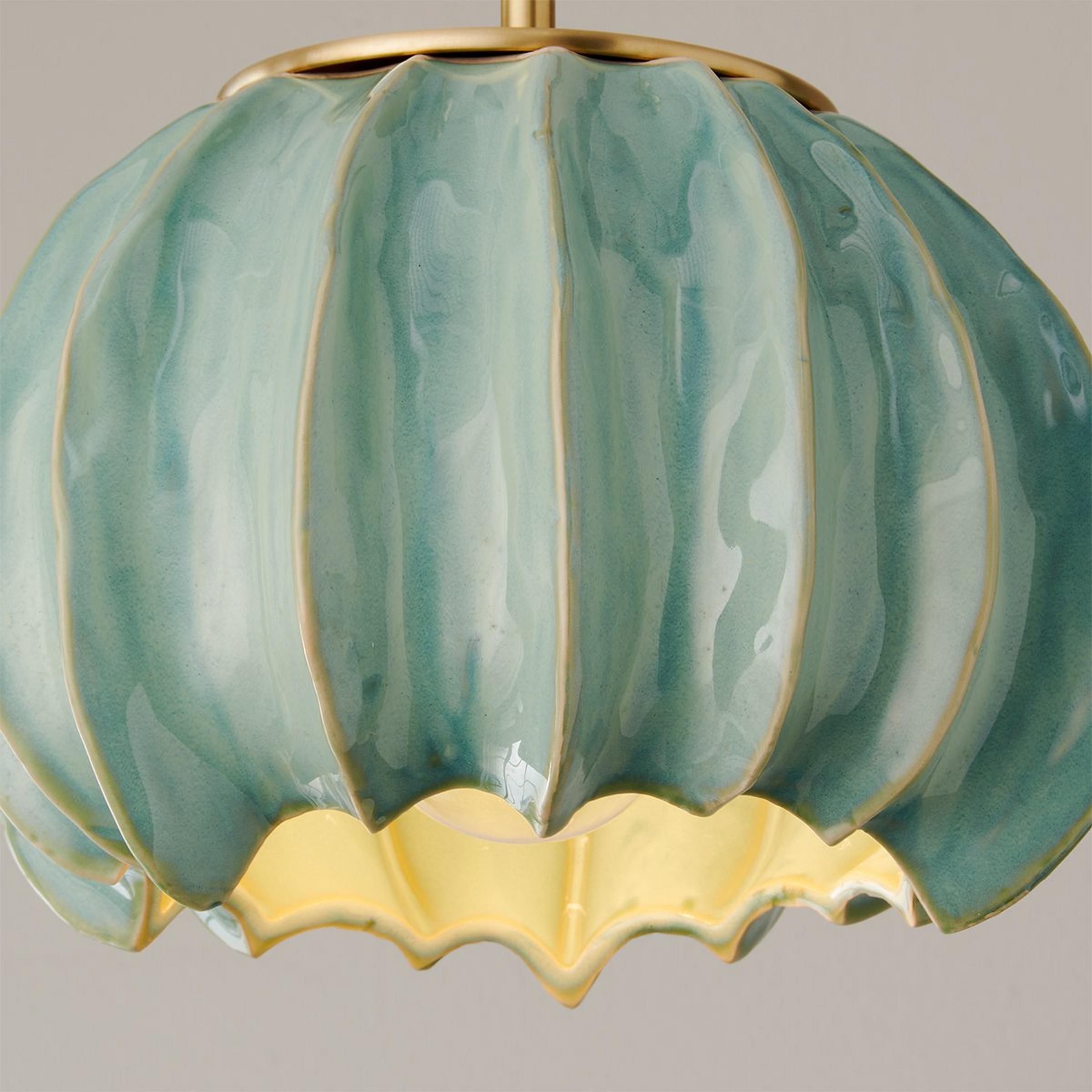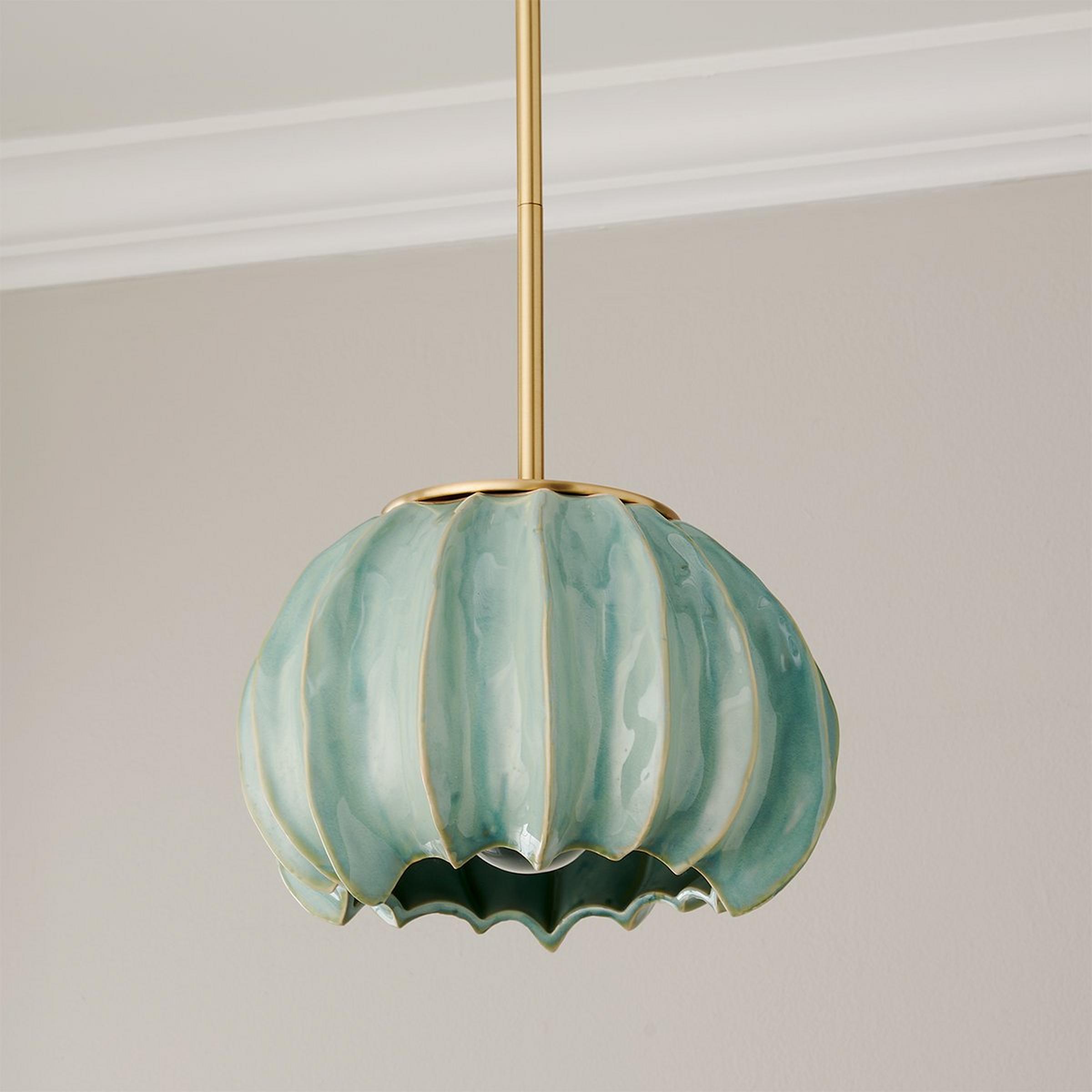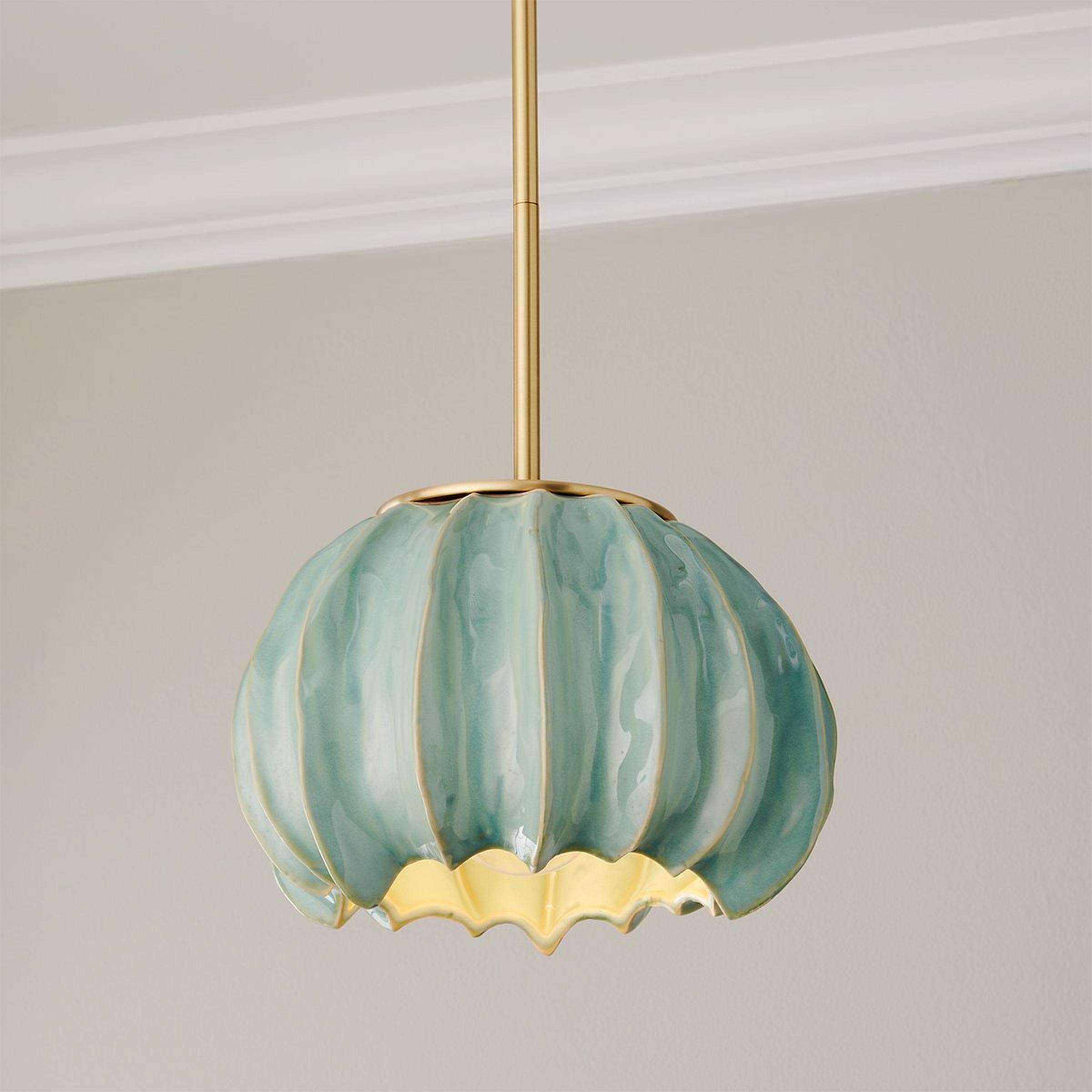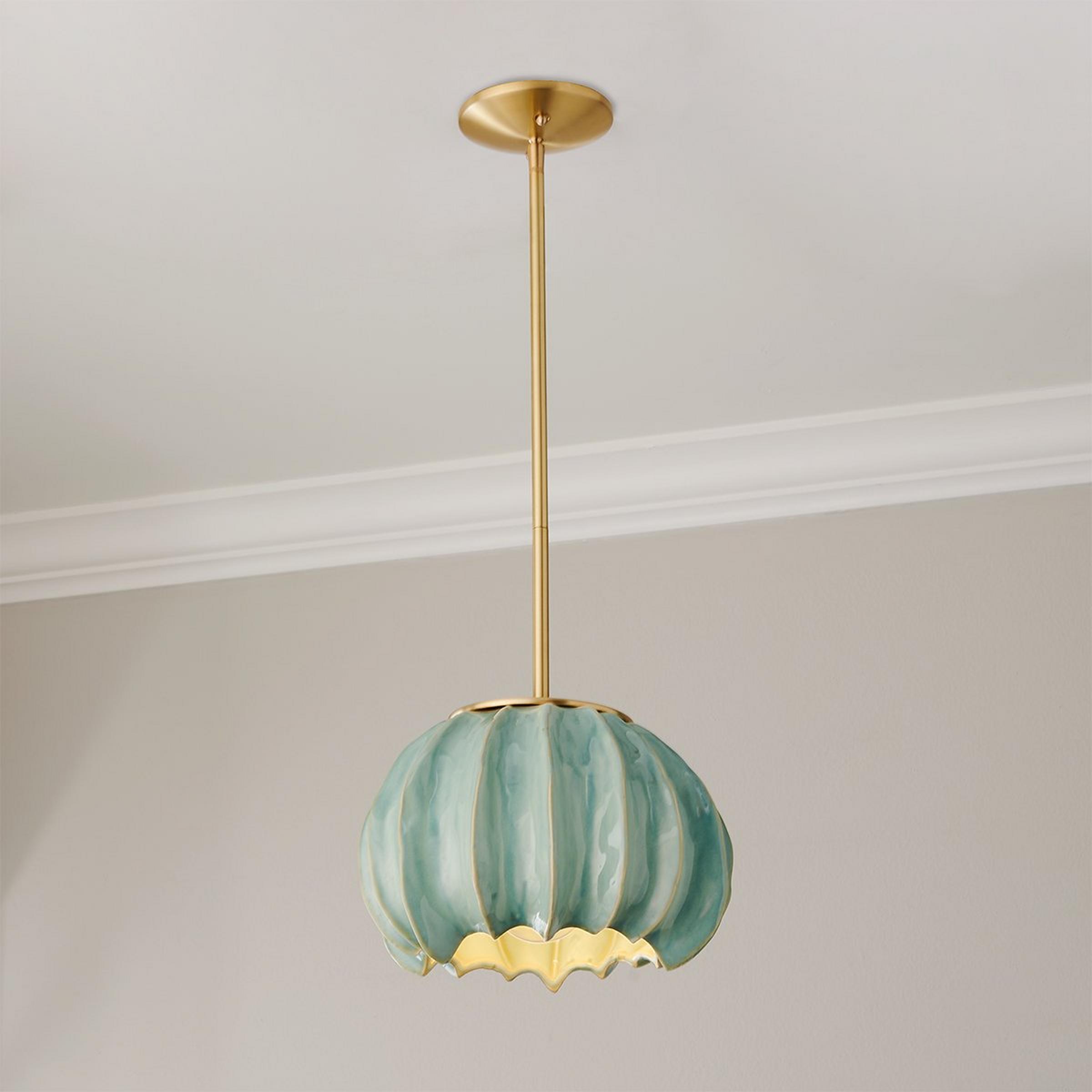 Eye-catching and irreverent, the Thalassa Pendant adds an abstract, playful touch to any room. Its simple metal hardware complements the colorful glaze, offering an energetic pop of color and contrast to your space. Due to the nature of handcrafted ceramic, no two pieces will be exactly alike, adding to the unique nature of the light. This fixture is assembled by hand in our Richmond, Virginia production facility.