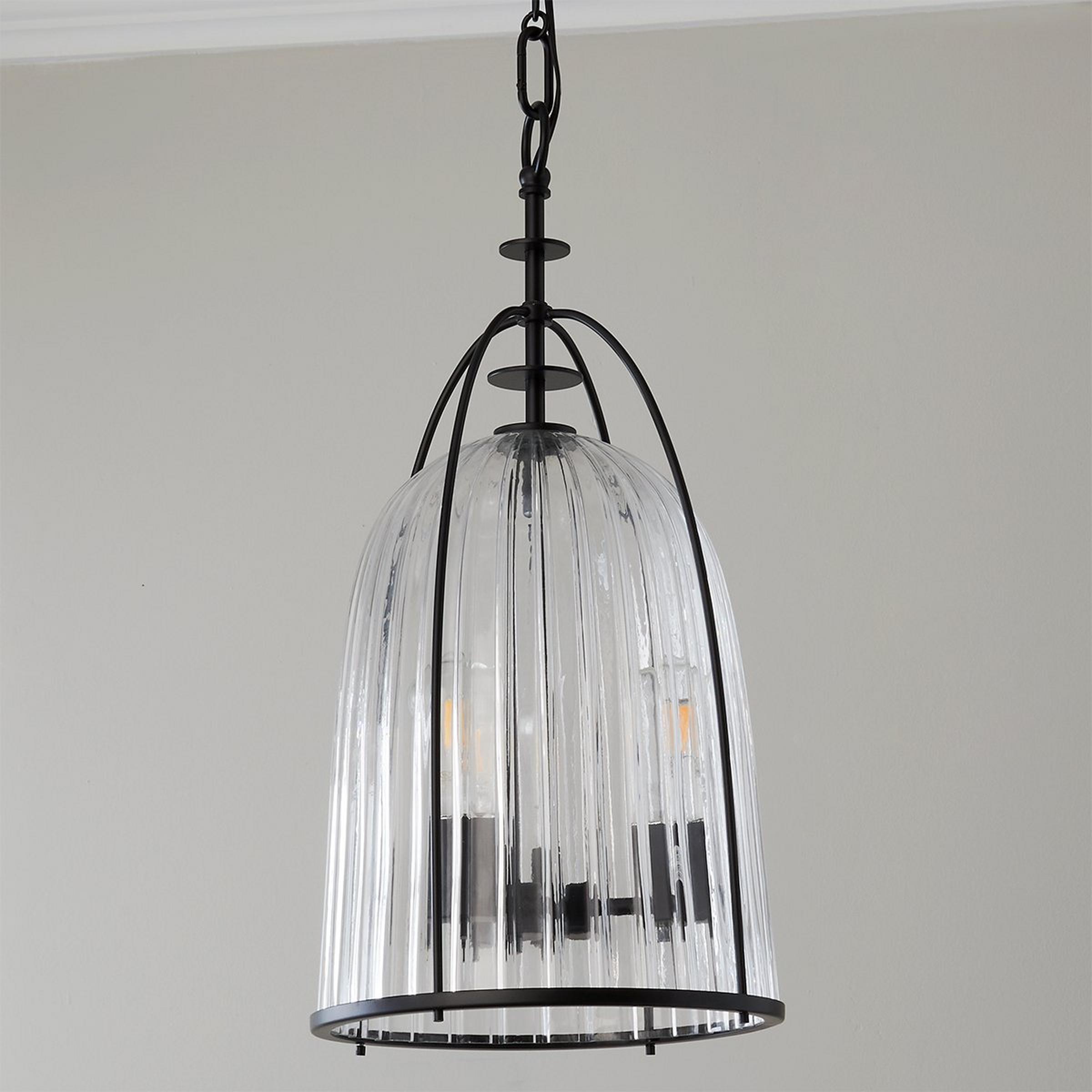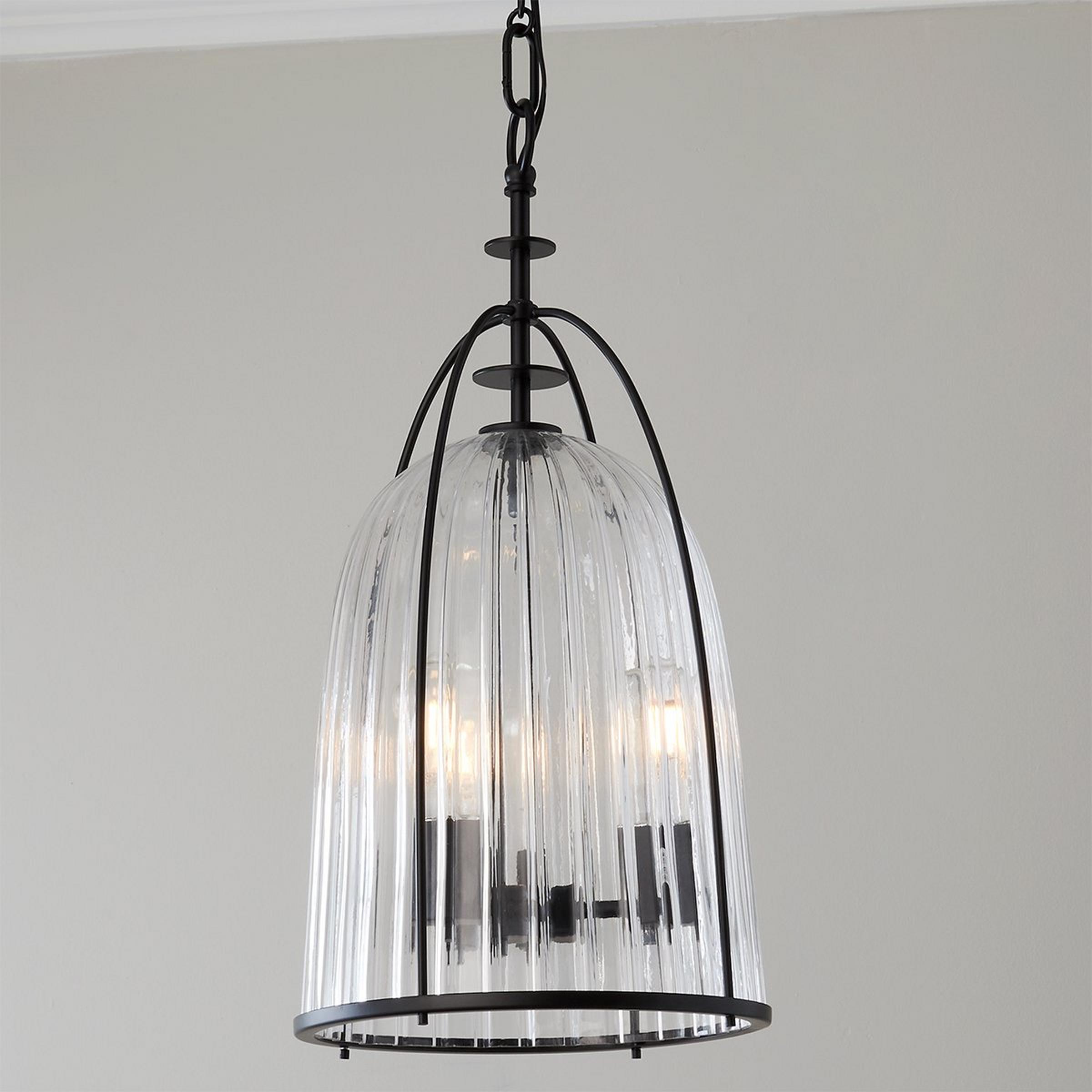 Theodosia takes inspiration from vintage design to create a fresh look with a nostalgic form. The lantern's delicate frame surrounds the fluted glass for a bird-cage-inspired silhouette. Each detail of this stunning fixture is intentional and immaculate, from the simple disk motif on the frame to the ribbed glass cover on the backplate. A refined piece that enhances your space, this light is a stunning focal point in transitional rooms or an added touch of antique charm to traditional homes.
