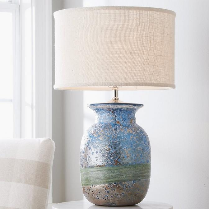 Like real tidal pools teeming with life, this lamp's lively pattern and organic shape is sure to liven up any space. Due to the hand made nature of this art glass no two will be exactly alike in color, pattern, or shape.