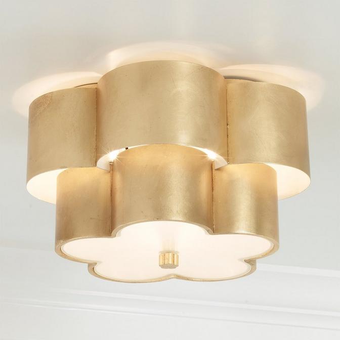 Daisy shaped shades arranged in a tiered pattern add a whimsical touch to your space while the beautiful metallic finish adds a modern flair to this charming ceiling light.