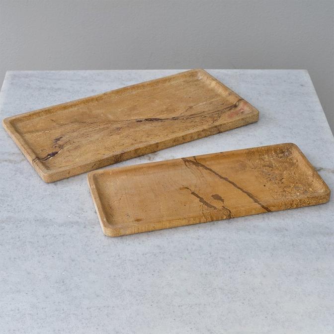 The substantial weight and luxurious feel of natural marble shine in our elegantly simple Tierney Trays. Sophisticated and versatile, these accent pieces make perfect trinket dishes for a bedside table or convenient drop zones for entryways. Please note that due to the nature of natural materials, differences in color, pattern, and veining should be expected and celebrated.