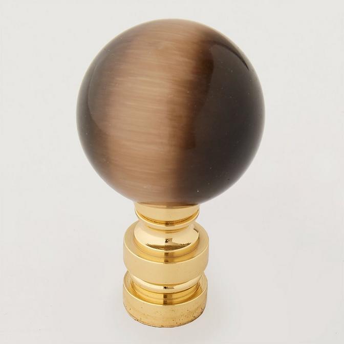 Our Tiger's Eye Finial will top off your table lamp with an eclectic spark of style. The glass ball is met with a metal base to sturdy it to your fixture.