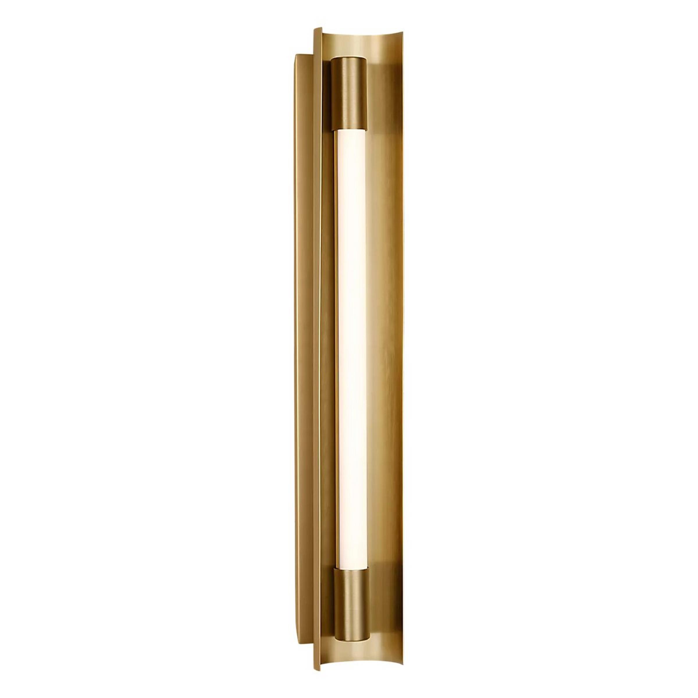 This stunning sconce features a gracefully curved metal shade that envelops its back, forming an inviting glow as it reflects its inner brilliance. Its striking integrated LED center creates a bold and vibrant luster, accentuating its elegant, elongated design. An ideal choice for illuminating a chic bathroom as a vanity light or for infusing sleek sophistication into a dining room. This captivating sconce mounts horizontally or vertically, offering versatile styling options to enhance your space.