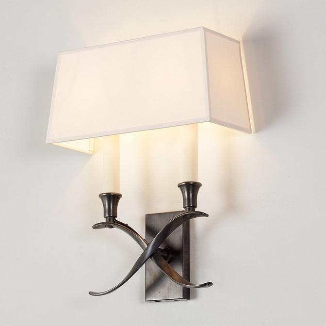 Perfect for lighting in powder rooms, hallways, or to flank your fireplace, this sconce showcases a natural paper shade atop a cast brass body with crossed "X" bars that create a simple transitional style in a classic way. French wired. Requires a smaller outlet box.