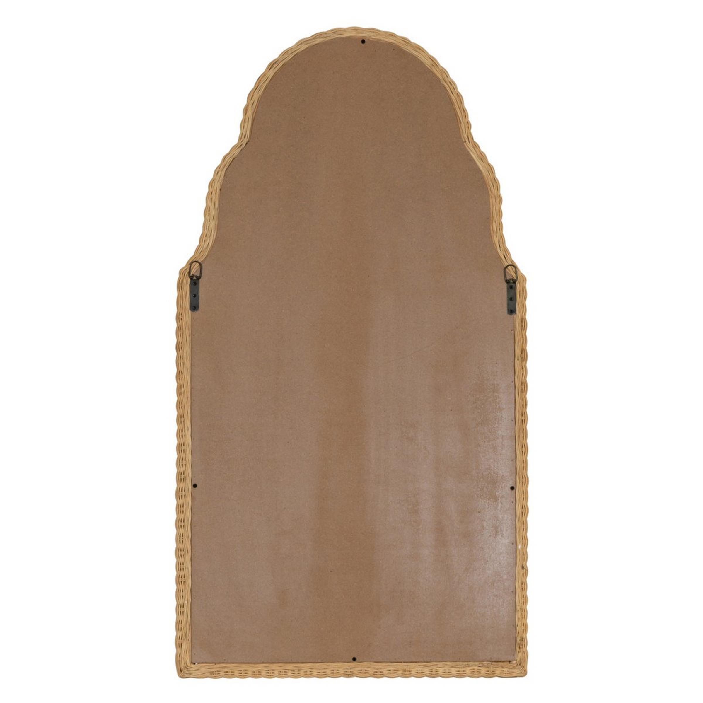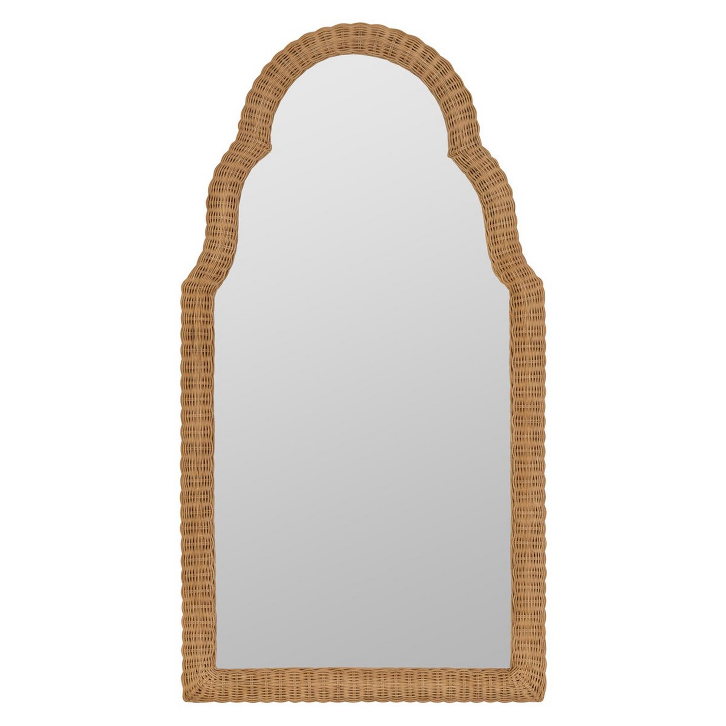 As the woven rattan wraps itself around the rim of this arched mirror, it introduces an organic sense of texture to the mirror through its curved lines and warm neutral coloring. The three-pointed arch is a nod to architecture and its history in a way that feels classic and timeless.