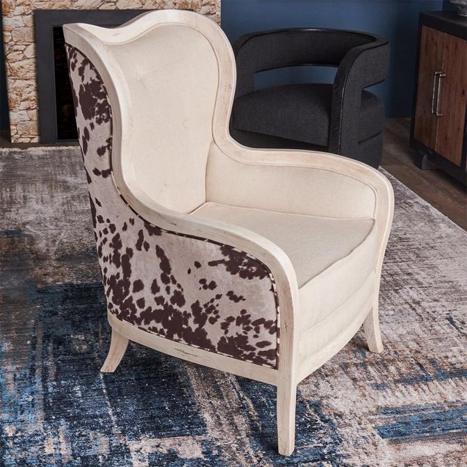 The Turono Wingback chair is perfect for anyone looking for a cozy and stylish place to rest. The curvy, exposed wood frame is finished in an aged, bone-white finish. The chair features a beautiful contrast between the spotted outer surround and the soft, neutral linen, tufted inside back, making it a perfect addition to any room.