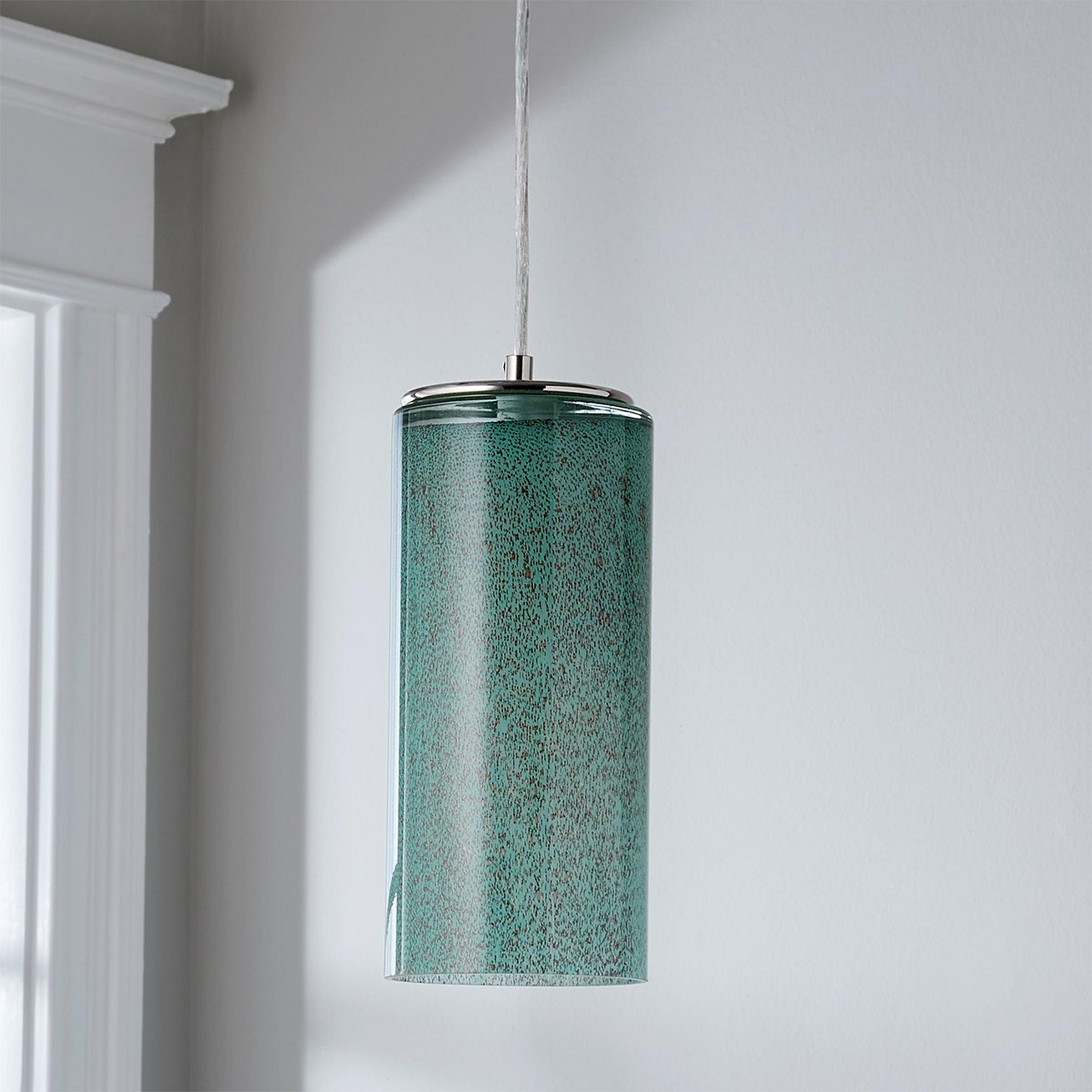 The subtle shape of this chic art glass pendant puts the focus on the gentle color gradient and contrasting neutral flecks. Because of the nature of art glass, variations in color, pattern, and texture should be expected and celebrated; no two art glass pieces are exactly alike, making each of these lovely fixtures truly one-of-a-kind! This fixture is assembled by hand in our Richmond, Virginia production facility.