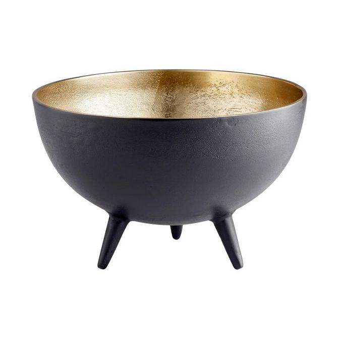 Upgrade your decor with the Ubre Bowl. This stunning piece features a textured matte black exterior and a textured golden interior, resting upon three legs. Perfect for adding sophistication and elegance to your living spaces.