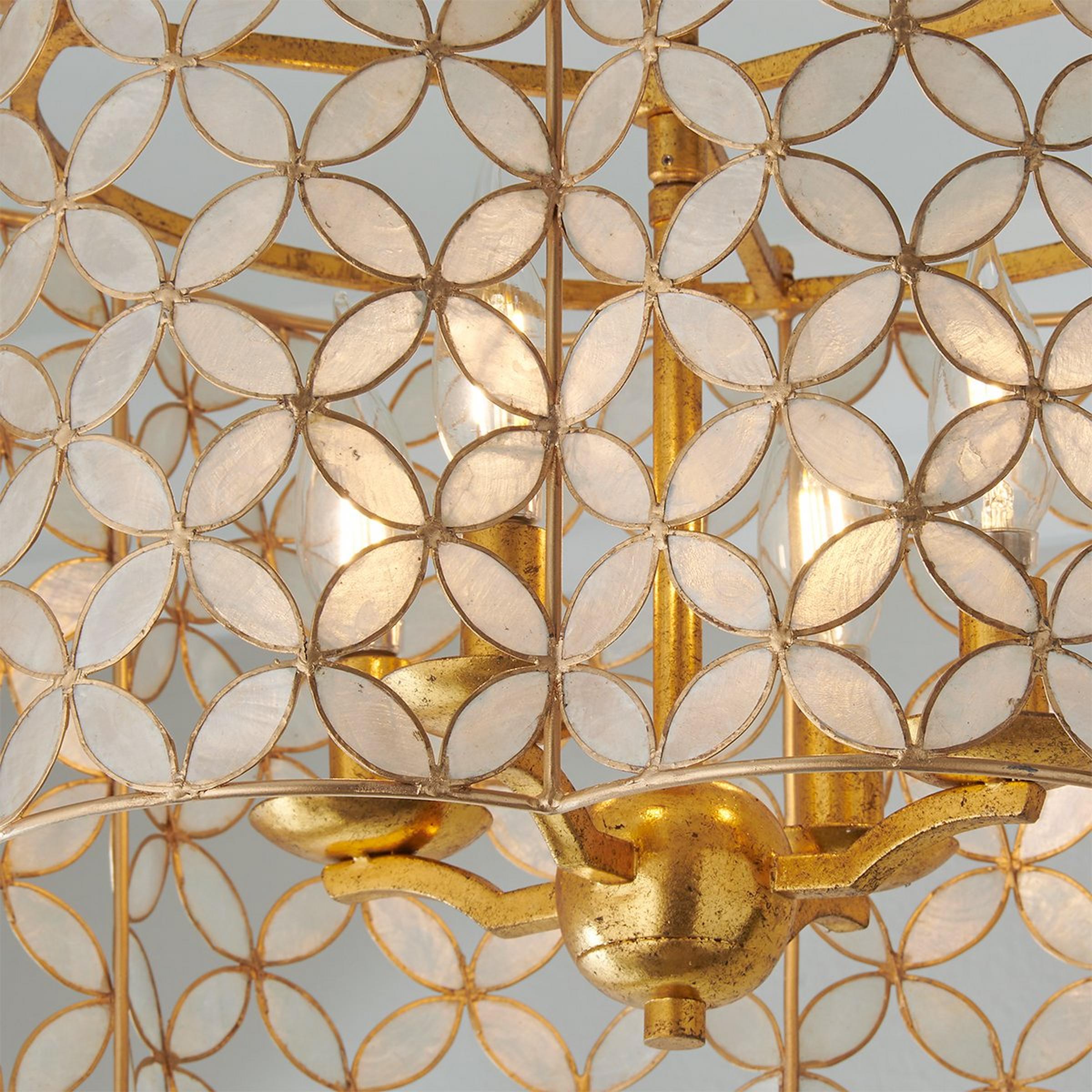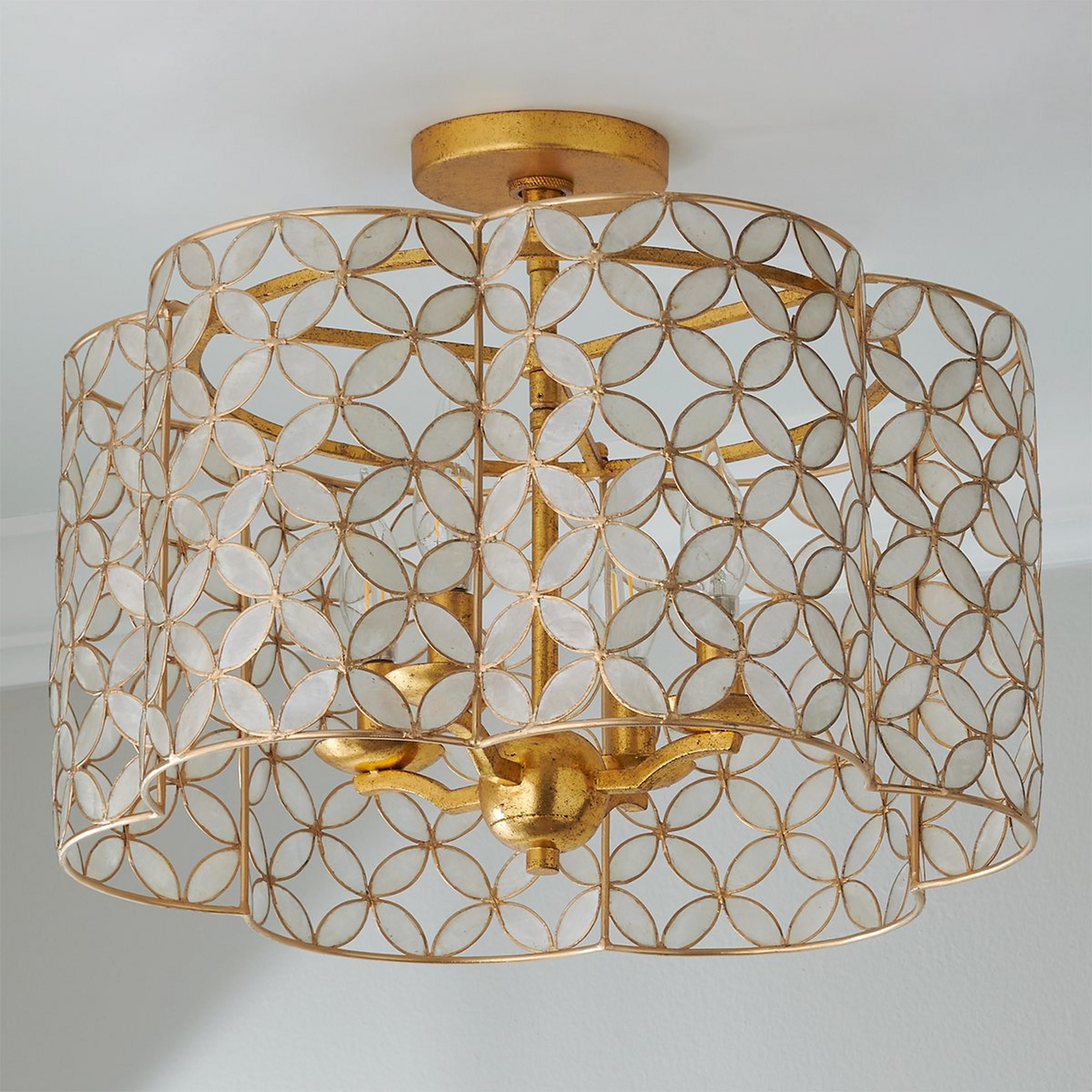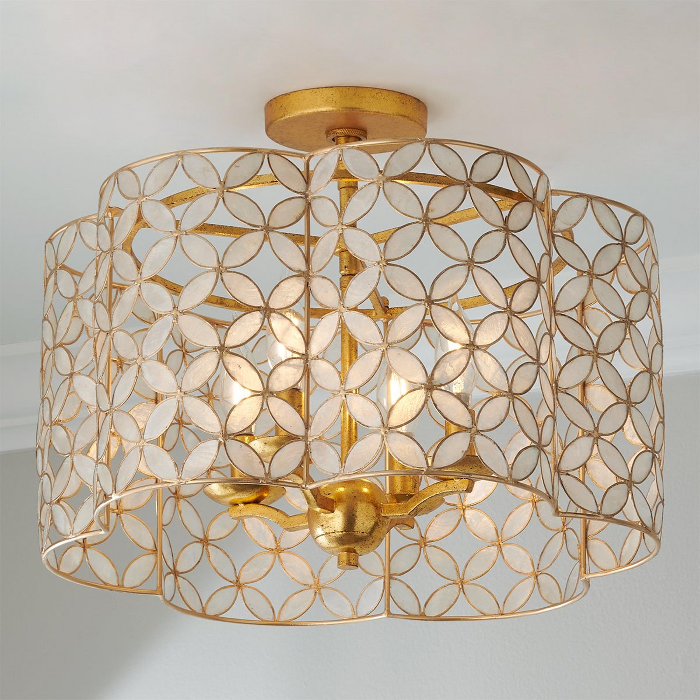 Our Vierpas Semi-Flush Ceiling Light features a captivating scalloped frame and natural capiz shell accents to elevate any setting with coastal-inspired charm.