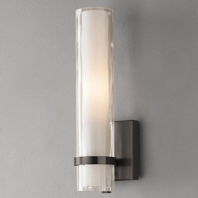 This wall sconce features an outer water glass with an inner frosted opal glass with wave pattern. The sconce has multiple finishes to beautifully complement the frosted opal glass. Pair this wall sconce with modern or transitional home decor for a fresh, clean look.