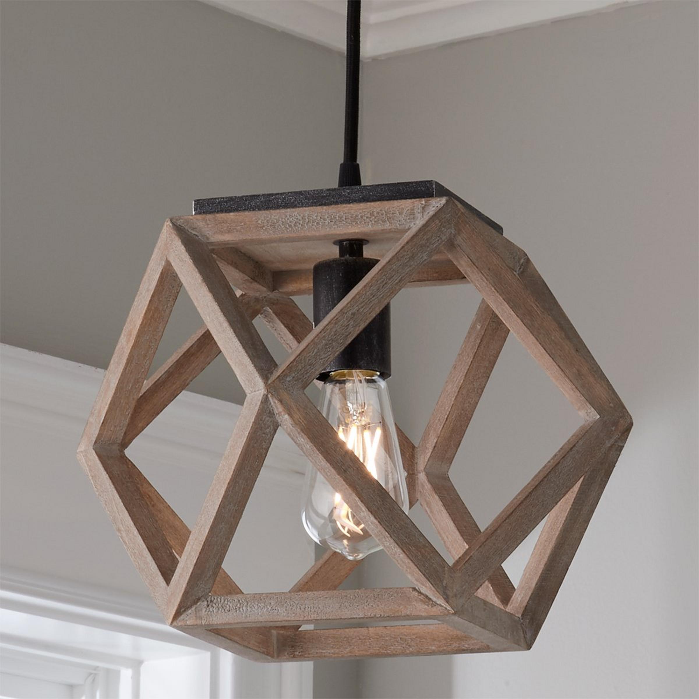 This weathered wood geometric pendant light exudes laid-back modern style. Lightweight wood with a gray wash finish reminiscent of driftwood will brighten your space and blend right in with your coastal, lodge or eclectic home. Character defining variation in the finish is to be expected with this natural wood piece.