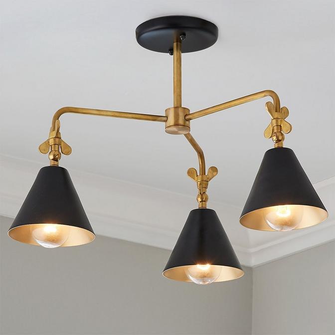 Oversized solid brass wing nuts give this semi-flush ceiling light a whimsical, yet industrial touch. This fixture is made by hand in Wendy Umanoff's studio in the heart of the historic Scott's Addition neighborhood in Richmond, Virginia.