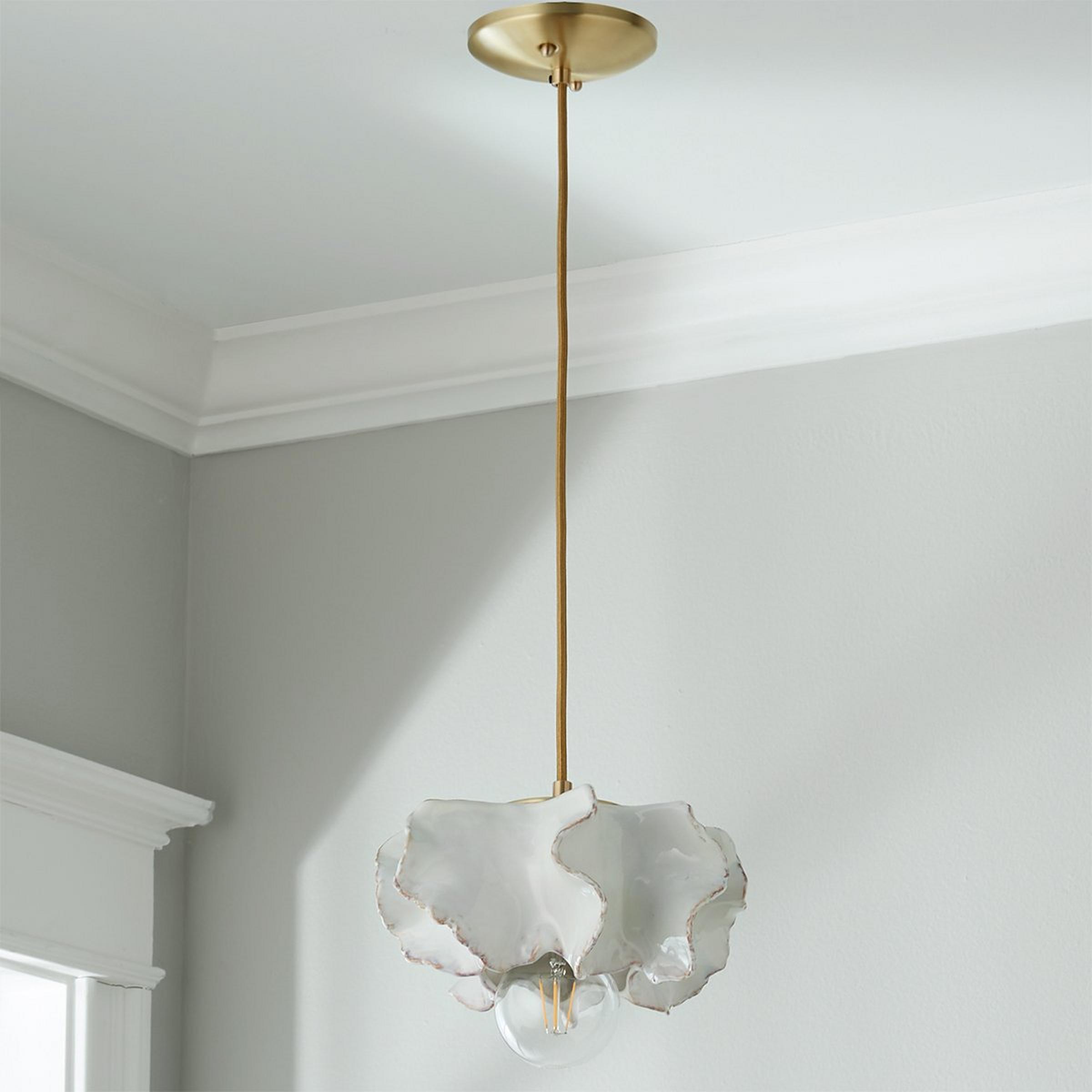 With the look of a sea creature swaying in the current, this small, glazed terracotta pendant is the perfect updated nautical touch for any space in need of some natural flair.