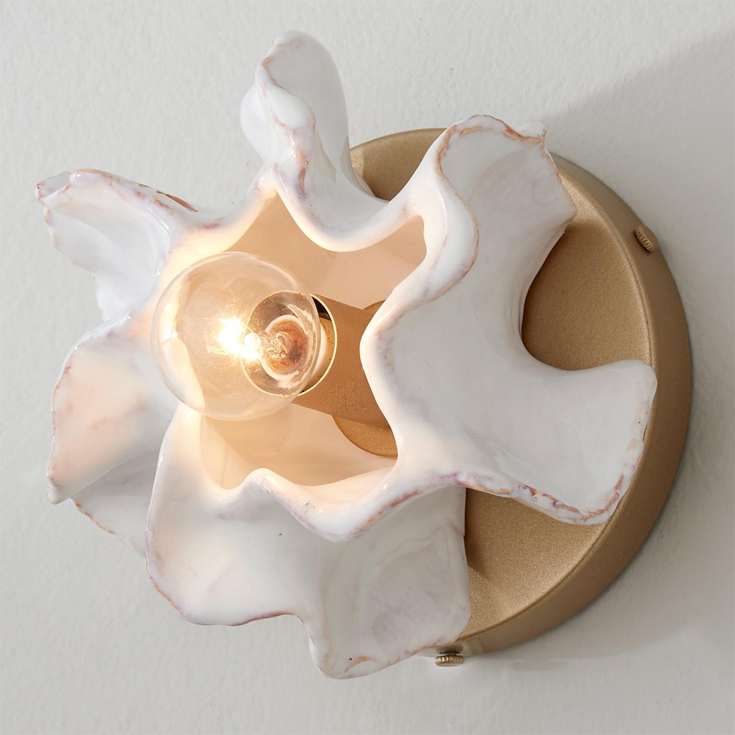 With the look of a sea creature swaying in the current, this small, ceramic sconce is the perfect updated nautical touch for any space in need of some natural flair. This fixture is assembled by hand in our Richmond, Virginia production facility. Due to the nature of producing this ceramic sconce no two will be exactly alike in glaze pattern or shape.