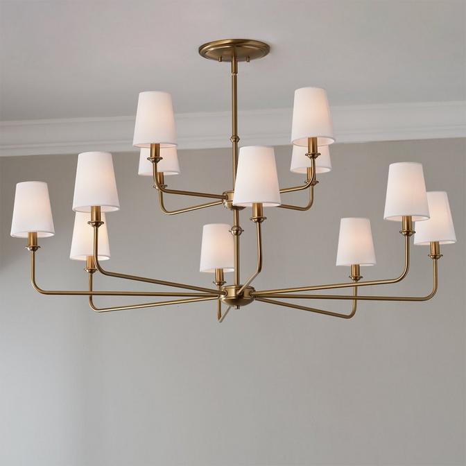 Simplicity and sophistication combine into a chandelier that is the epitome of elegance. With its simple curved lines and metallic hardware, this chandelier still shines with or without shades. Made to illuminate foyers and dining rooms with high ceilings, customize Willemina to suit your space!