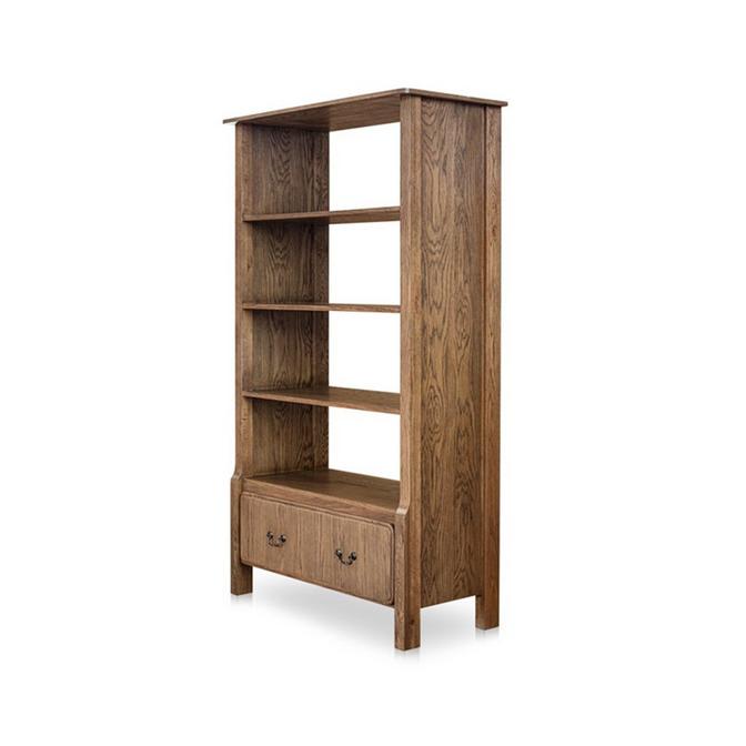 The open shelving of our Willoughby Bookcase will beautify any space as it introduces a light, airy feel. Function is further maximized by the drawers at the bottom of the bookcase, featuring rounded edges and classic dr0p-handle pulls. The frame and legs are crafted with solid oak, ensuring that the piece is durable and long-lasting.