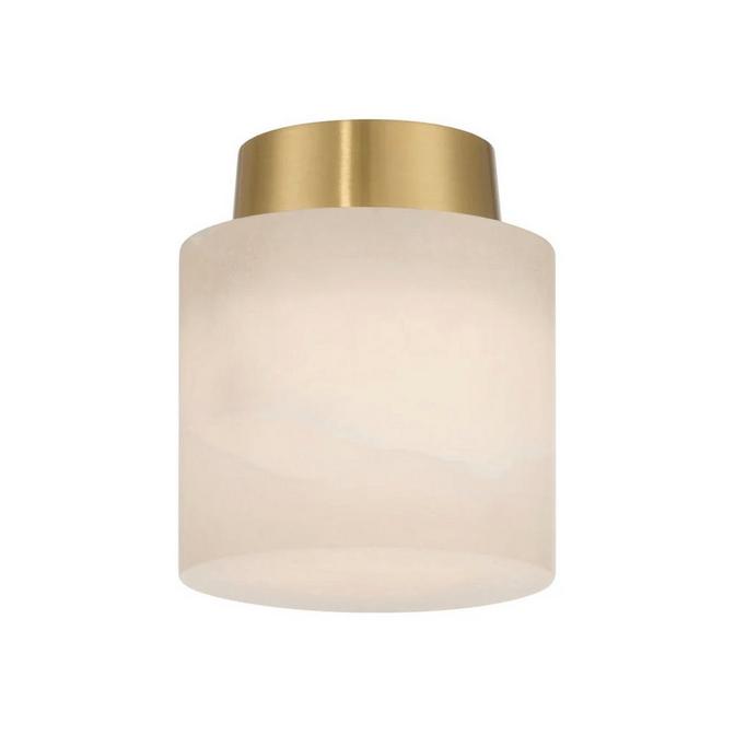 This lavish ceiling light features a stony shade that casts an even glow to fill a room. It has a cylindrical silhouette that softens the overall look. When illuminated, veins of the stony alabaster shade provide ample visual texture, providing contrast wherever needed. Install this in a front entryway, living room, or hallway to take full advantage of its minimal yet decorative effects. As a natural material, each piece of alabaster will vary in veining, texture, and tone, allowing each fixture to be celebrated as a one-of-a-kind piece.