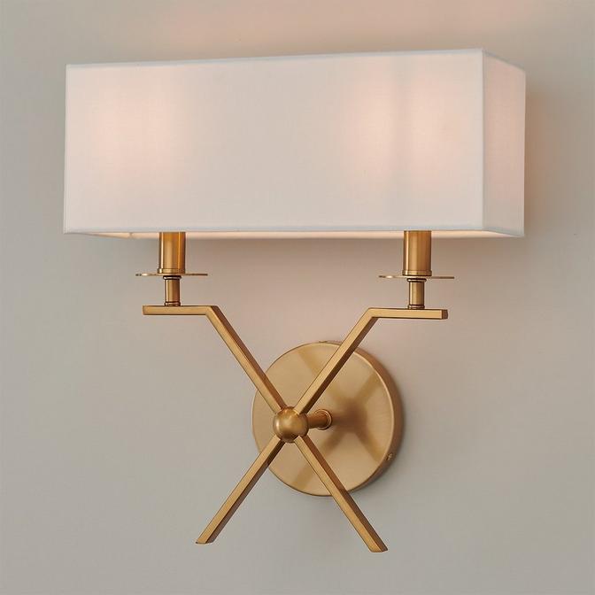 This classical sconce has a wide linen shade juxtaposing its thin metal frame for a bold yet traditional look. Xiadani's crossed design modernizes its vintage inspiration with hard edges and straight lines. The slender circular backplate and metal orb centerpiece soften the robust sconce, perfect for lighting a hallway or accenting a formal dining area.