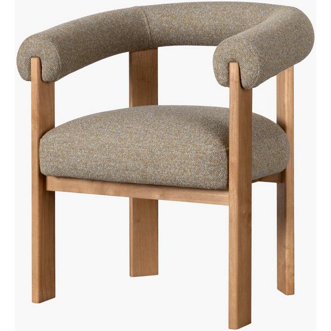 The ideal dining suite combines an elegant aesthetic with an inviting feel that fosters conversation and comfort. Our Ximeno Dining chair's sleek frame and upholstered accents are perfect for enhancing your space with polish and ease. Place a pair as accents, or use them to decorate your space with bold flair around your entire table. This piece harmonizes with both more elevated dining styles and cozy breakfast tables. The natural wood tones add a subtle warmth to the airy design, as the curved lines and thin legs enforce this chair's stylish composition.