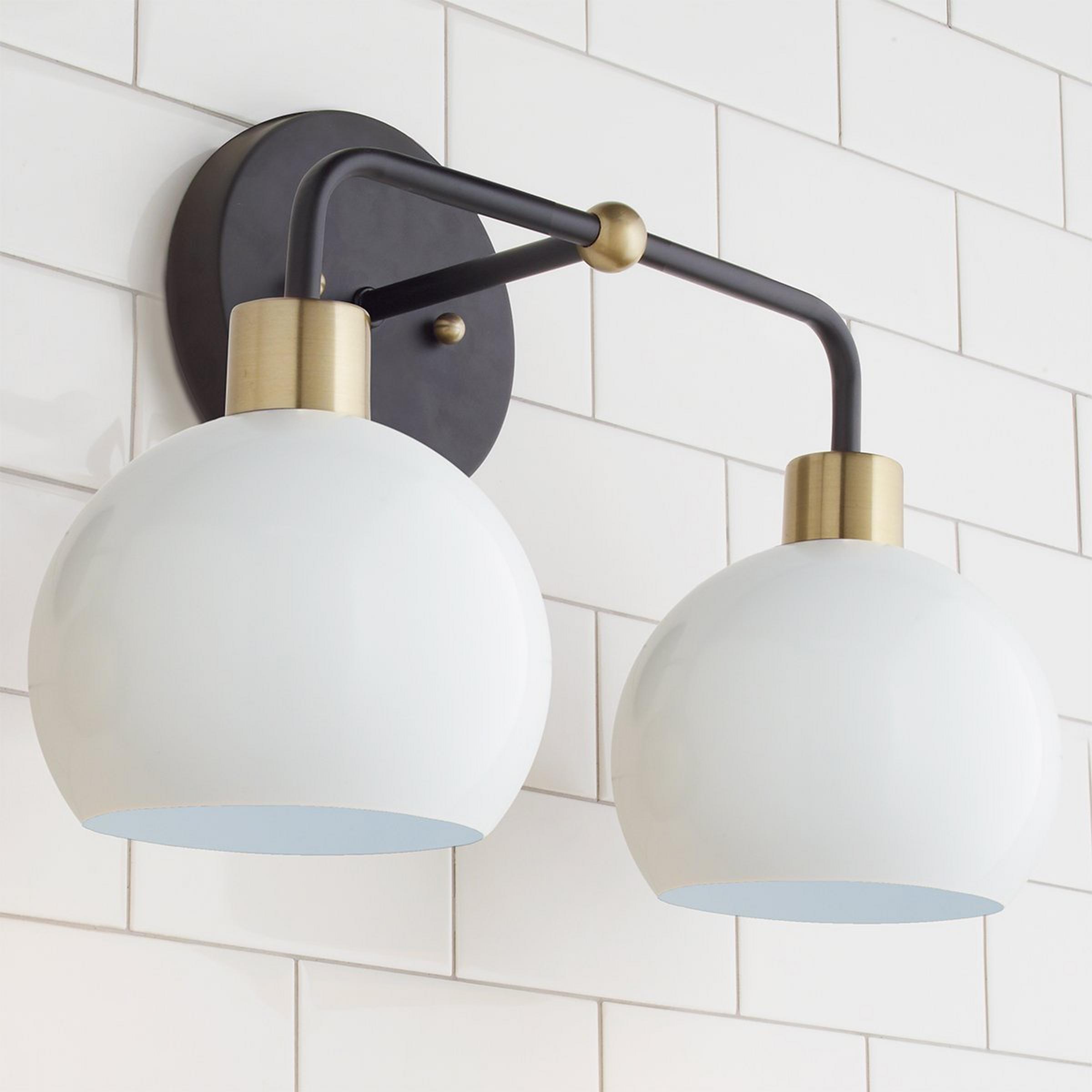 This Young House Love 2-Light Bubble Vanity Light is one of our most popular YHL products! Its open globe light shape, available in several sleek colors and finishes, makes it a stylish mid-century modern bubble bath sconce choice. We recommend updating a boring bathroom by removing outdated builder light fixtures and mounting this fun vanity light above an existing cabinet.