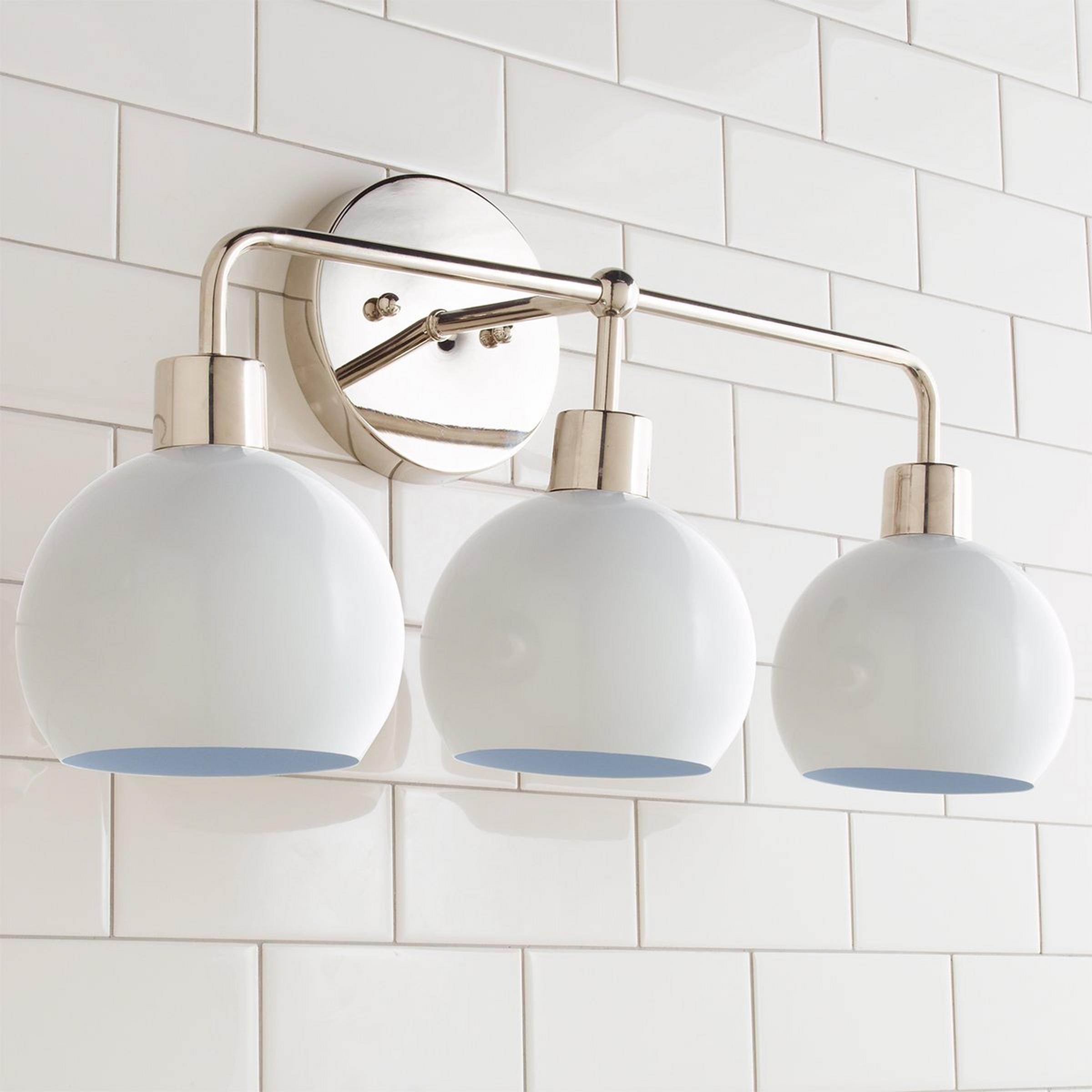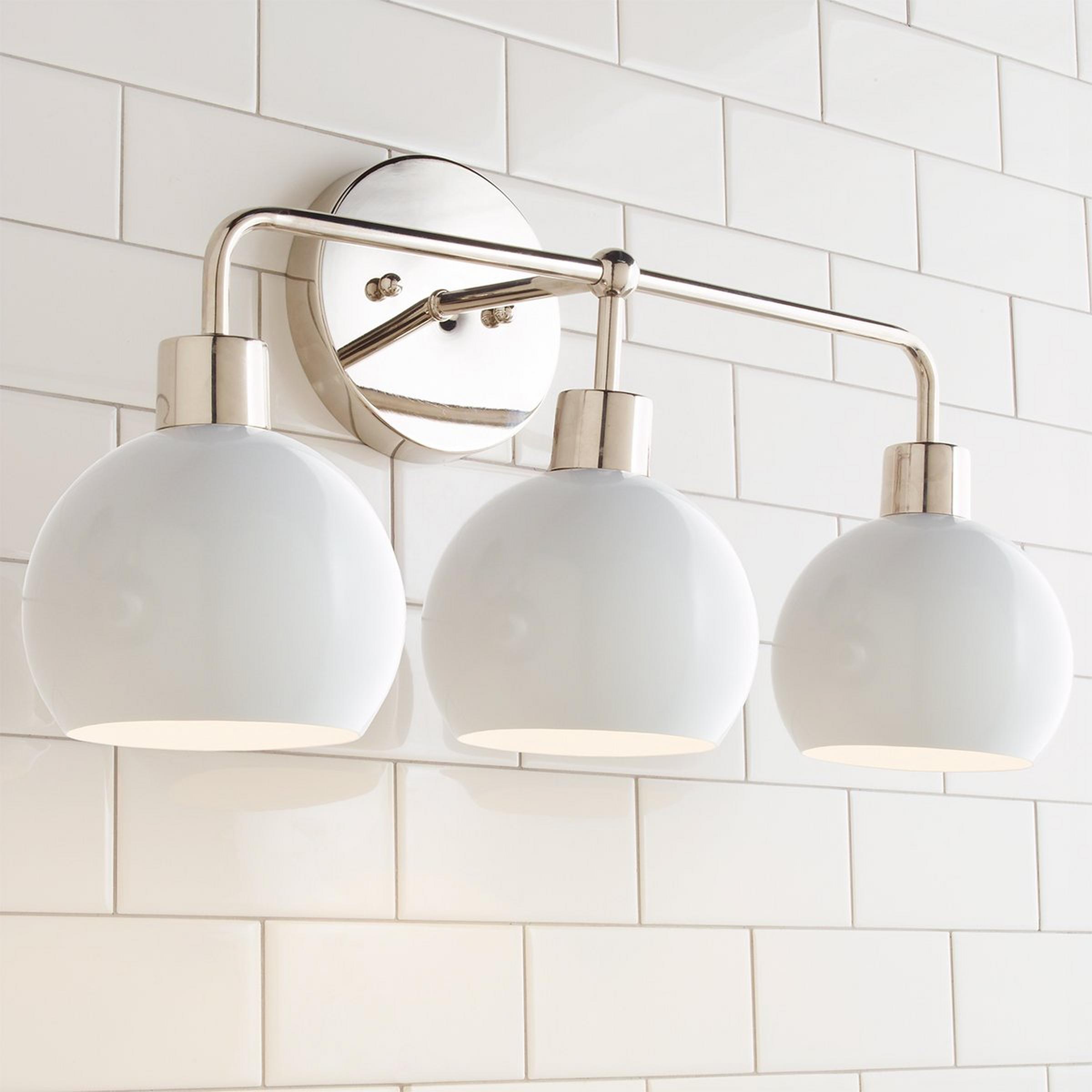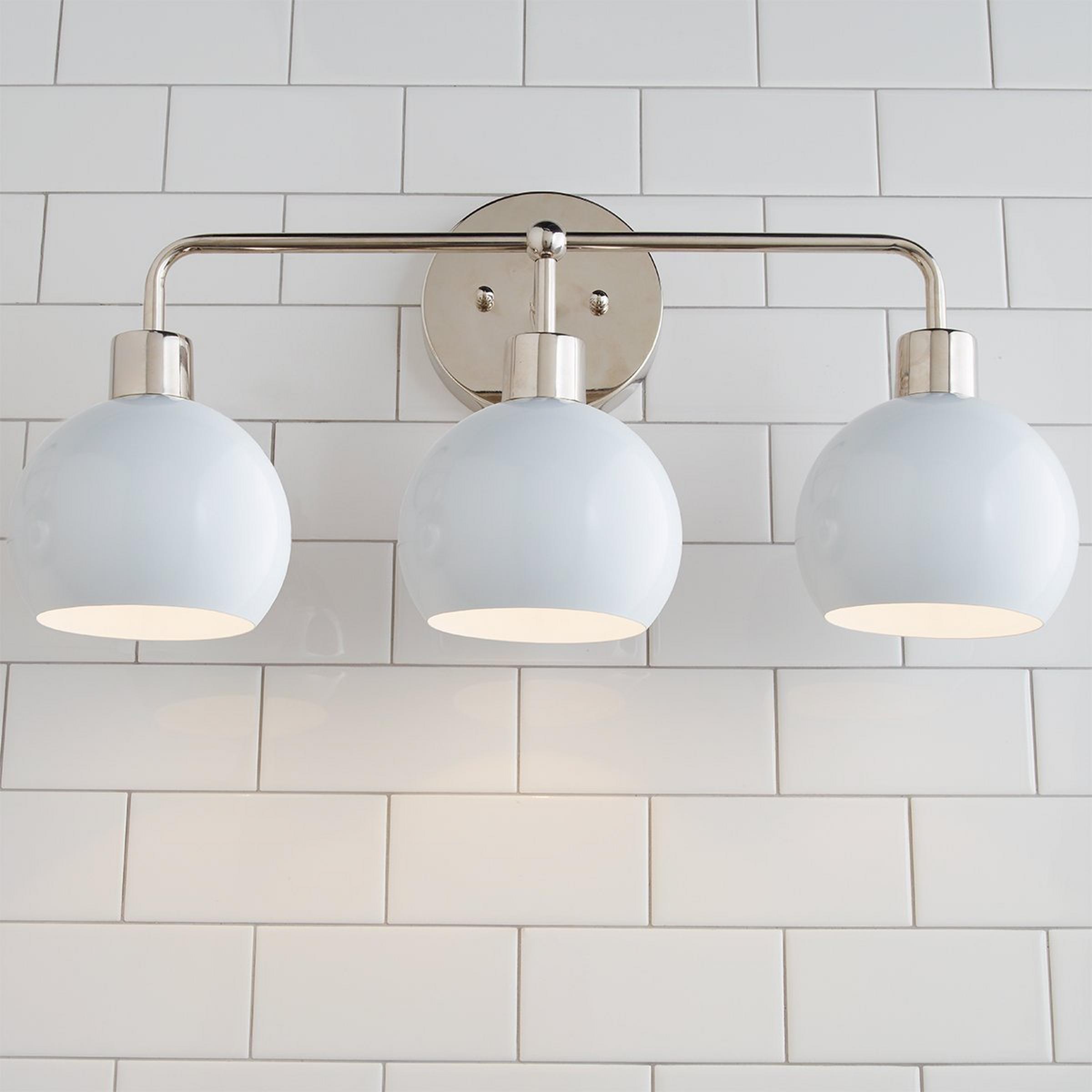 This Young House Love 3-Light Bubble Vanity Light is one of our most popular YHL products! Its open globe light shape, available in several sleek colors and finishes, makes it a stylish mid-century modern bubble bath sconce choice. We recommend updating a boring bathroom by removing outdated builder light fixtures and mounting this fun vanity light above an existing cabinet.