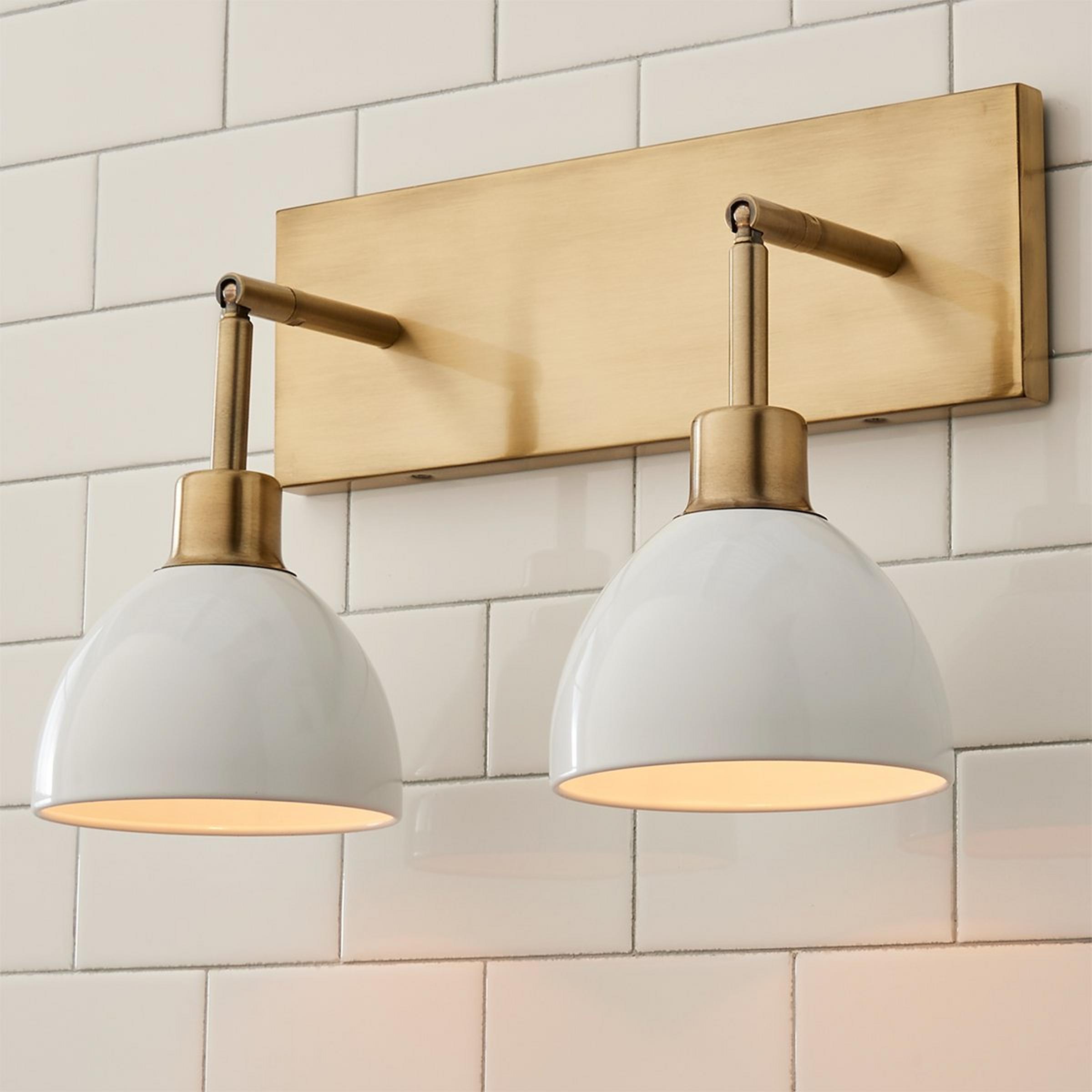 Our Young House Love Dapper Bath Light is a super functional and attractive wall light fixture. This light adds presence and focused precision without excess. You'll love the versatility in this light, with an arm that can be adjusted up and down and a durable metal shade available in mid-century modern colors and a variety of backplate finishes. The silhouette is simple and quiet - it’s lighting that doesn’t just brighten a room but defines it. Every detail of the Young House Love Dapper Bath Light speaks to deliver both form and function with mixed metal elegance. Arm depth (7.5"- 12.25").