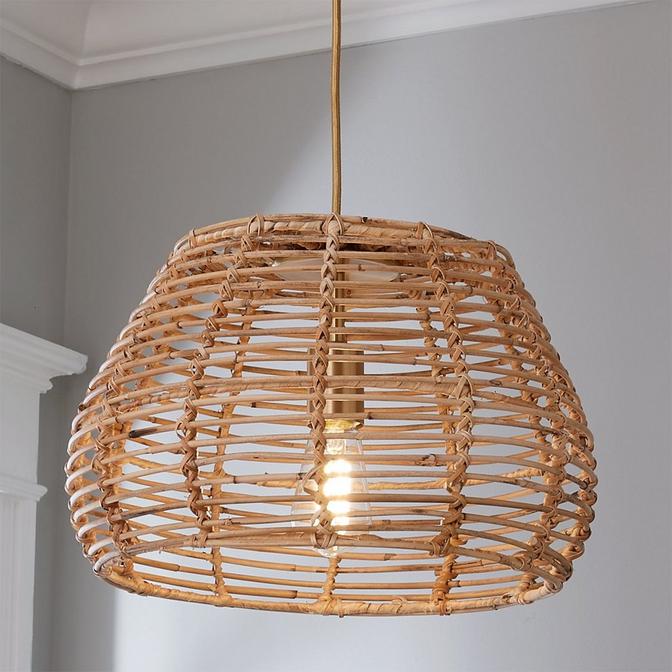 Young House love is back at it, bringing you an open, organic rattan shade that surrounds solid brass hardware in this pendant that brings a special touch to any space looking for a refined; yet nautical, addition. This fixture is assembled by hand in our Richmond, Virginia production facility using solid brass hardware.