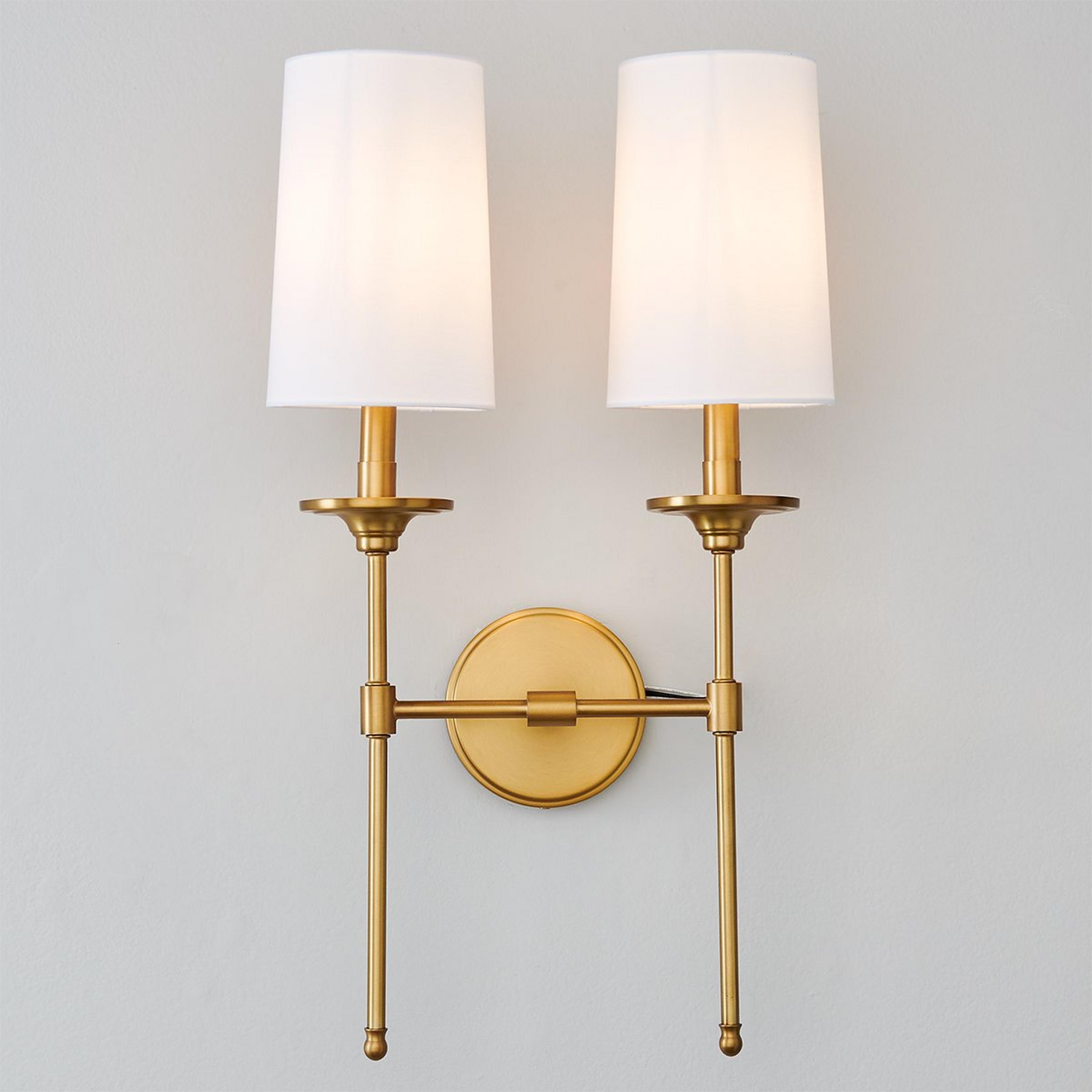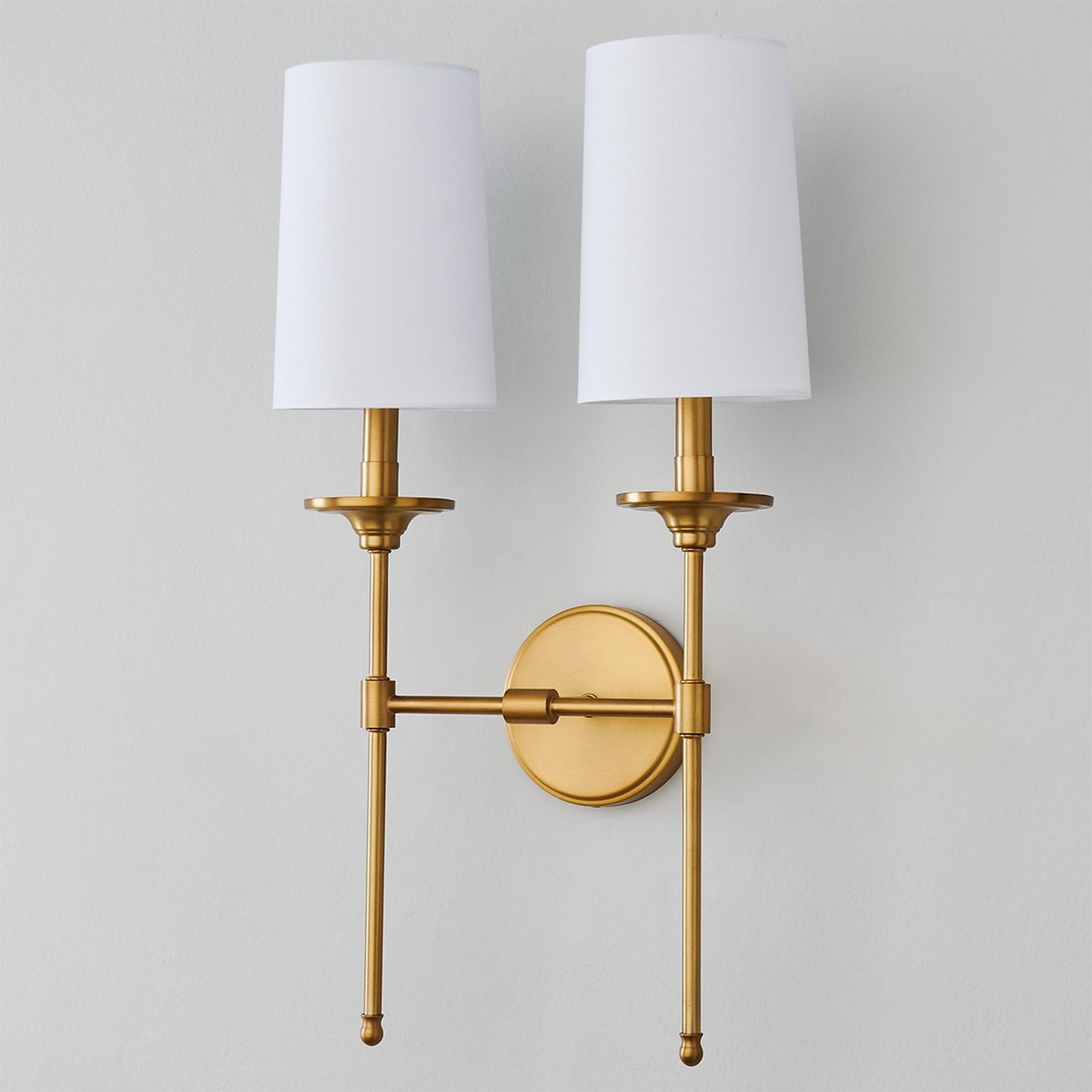 This elegant blend of slim lines and off-white tapered shades exudes refined and everlasting style. The Zalibet Double Sconce enhances traditional and transitional decor with a classic character and a warm, inviting glow.