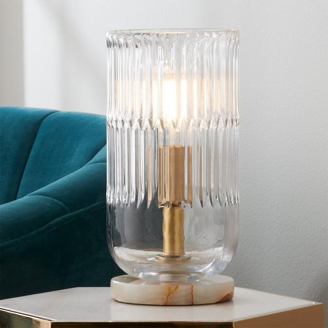 Solid green onyx stone anchors this unique table lamp that is assembled by hand in our Richmond, Virginia production facility, making it the perfect art deco accent on a sideboard or next to a bed.