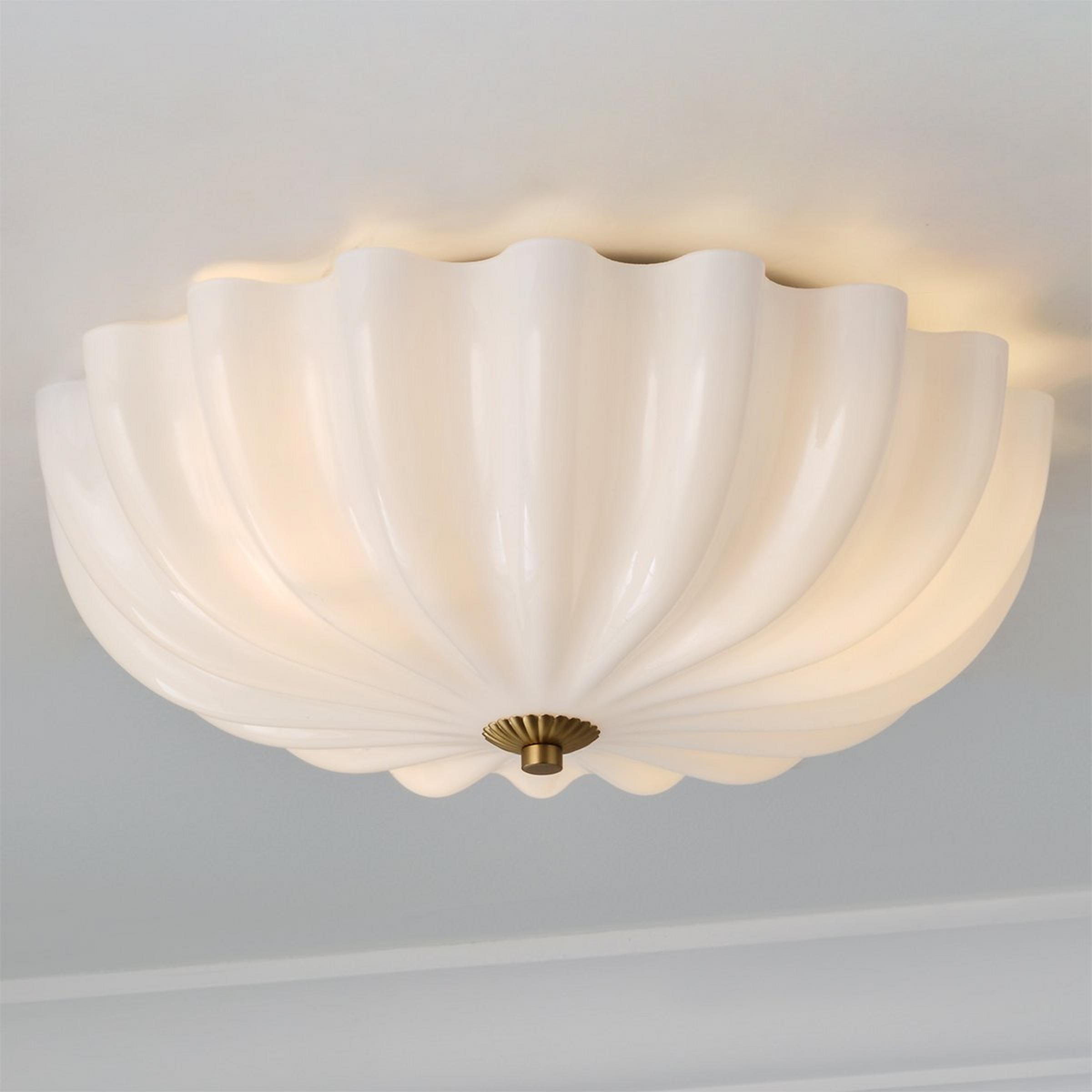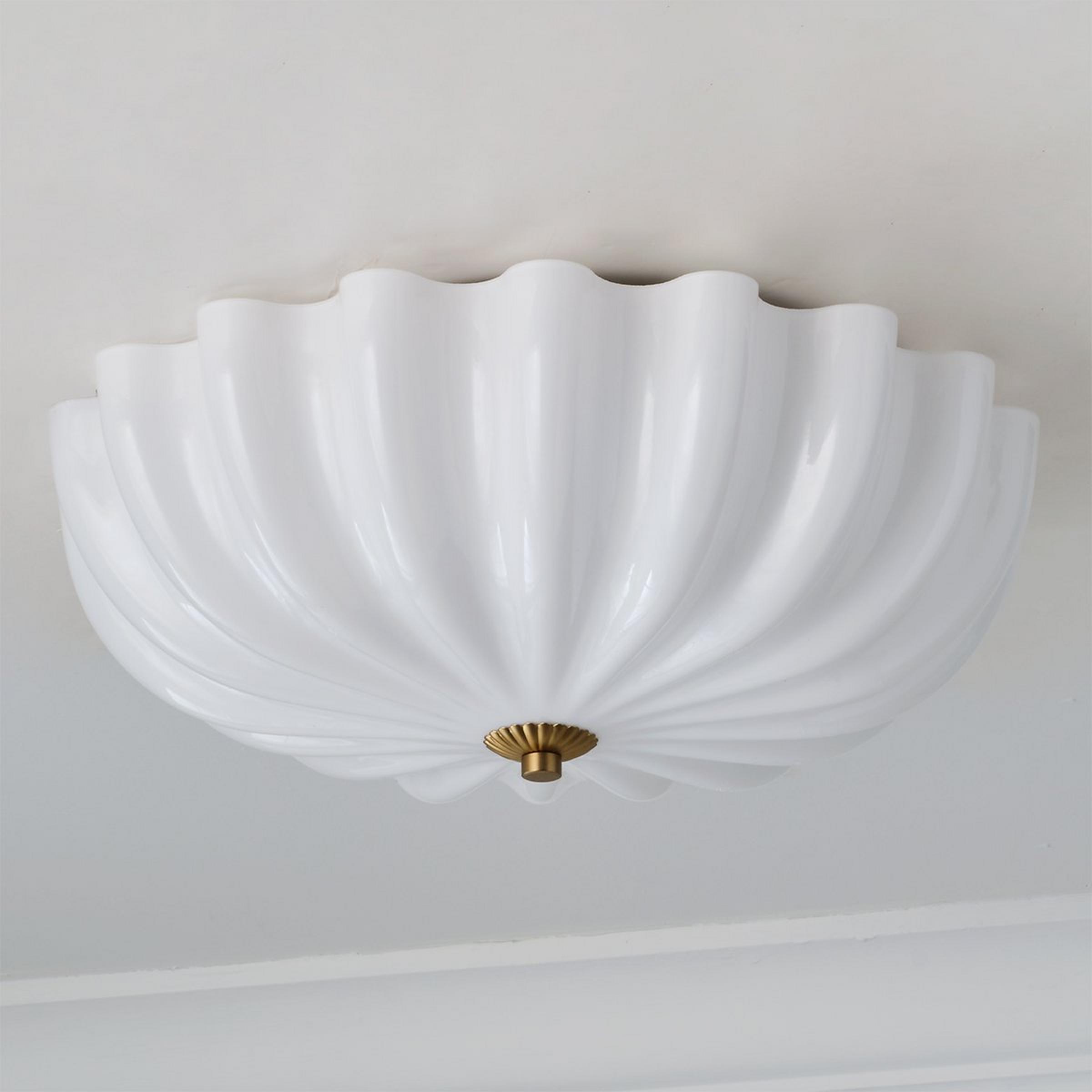 Zenaida's opal glass shade is captivating and unique. This ceiling light's gentle curves and metallic accents reflect vintage styles with lasting elegance. Use this light as a dramatic sconce or a classic flush mount; its versatility is endless! Its warm glow beautifully illuminates your space and complements various design styles.